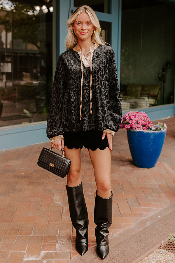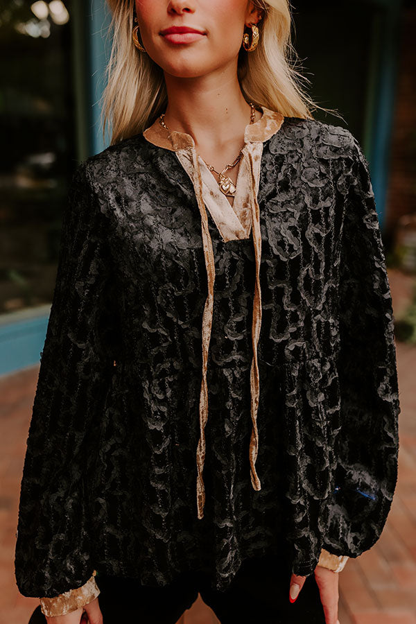 - Be ready to fall in love with this beautiful top! With luxe velvet and intricate details, this piece brings chic vibes. Step out in style and get ready for endless compliments with this trendy top.