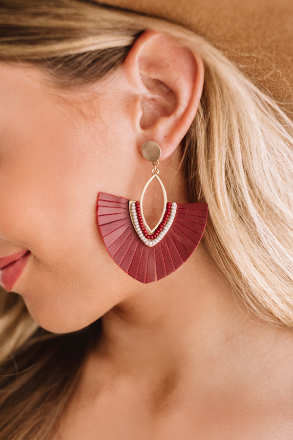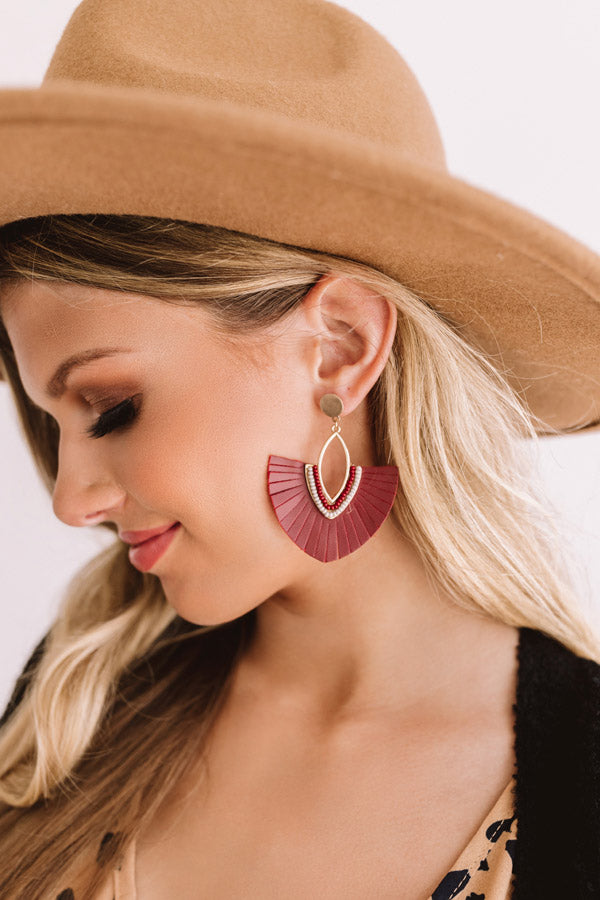 Life isn't perfect, but your jewelry can be and the "Charm Life" statement earrings are the ultimate accessory with their gold circle studs and open eyelet hoops with merlot faux leather tassel fans!