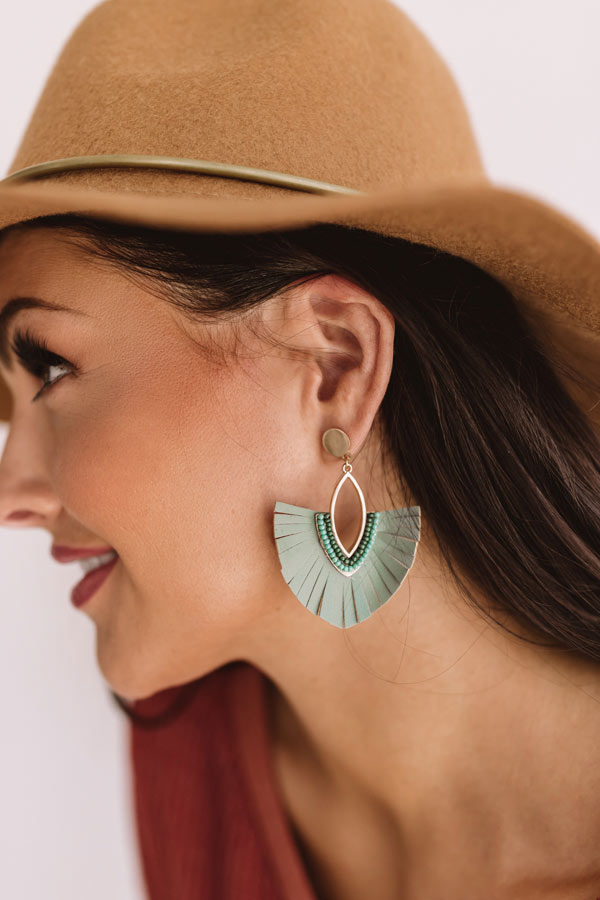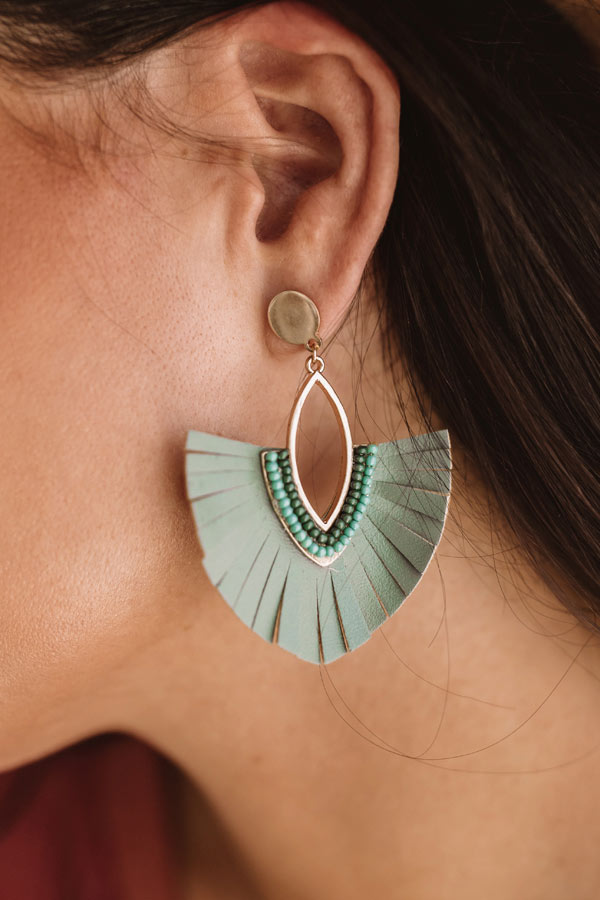 Charm Life Faux Leather Fan Earrings in Olive