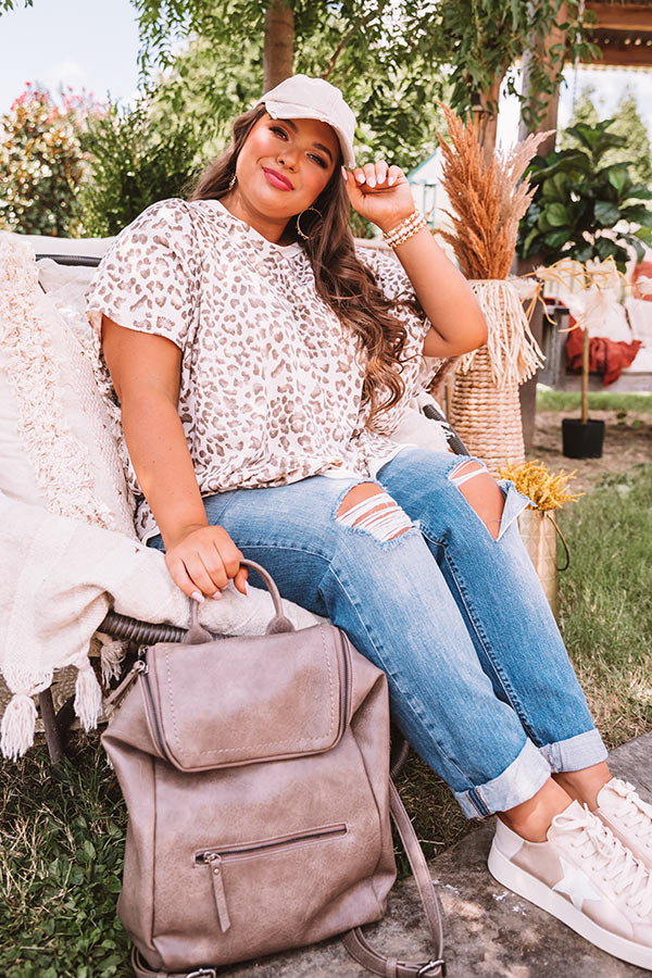 Plus Size - You are sure to put off a "charming disposition" when you wear this adorable shift top featuring lightweight material patterned with a bold brown leopard print, a high rounded neckline, short loose sleeves, and a relaxed silhouette that falls into a rounded hemline! We have styled this casual piece with some distressed light wash skinnies, a matching faux leather backpack, and a neutral sneaker and baseball cap, but you can also wear it with some white shorts and "The Bowen Wedge in Brown!" Measurements