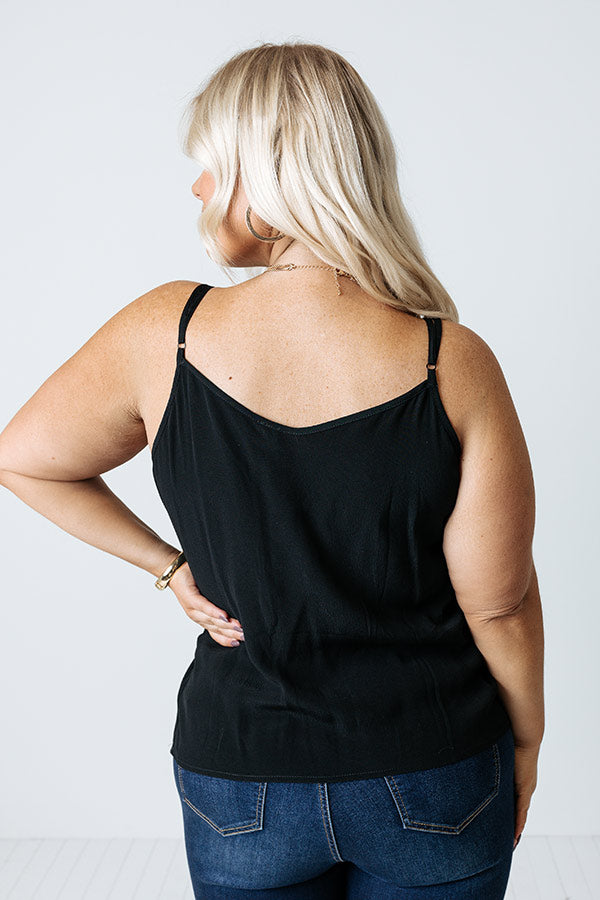 Perfect for layering, our adorable plus size black 'Charming Life' top features lightweight material with white embellished polka dots, a v-cut neckline, adjustable spaghetti straps, and a relaxed silhouette that falls into a straight hemline!