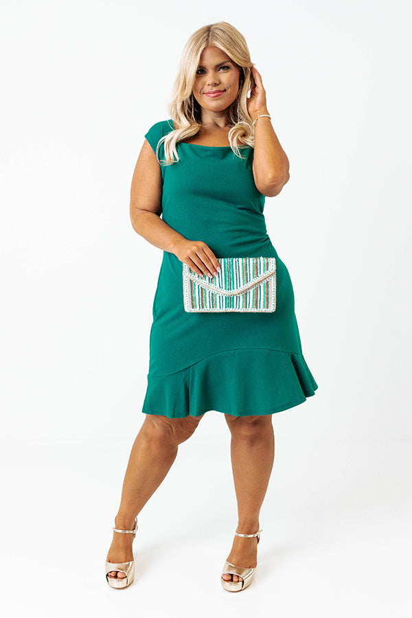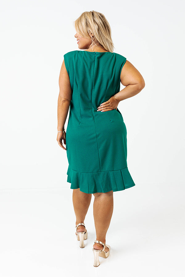 Arrive in style in our chic teal colored plus size 'Chasing Love Shift Dress' featuring lightweight material, a high square neckline, dainty cap sleeves, a zip closure in the back, and a flattering figure hugging silhouette that falls into a subtly ruffled mid-thigh length hemline!