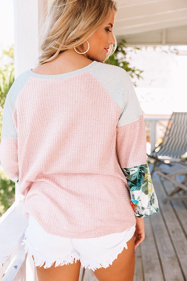 Chasing Sunsets Waffle Knit Shift Top In Pink