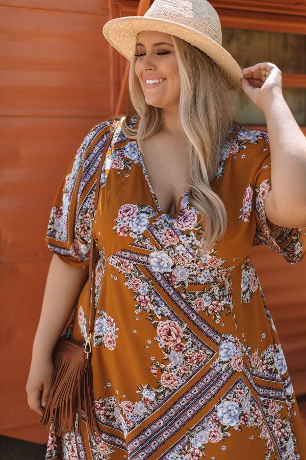 Chasing Wildflowers Midi Dress In Mustard Curves