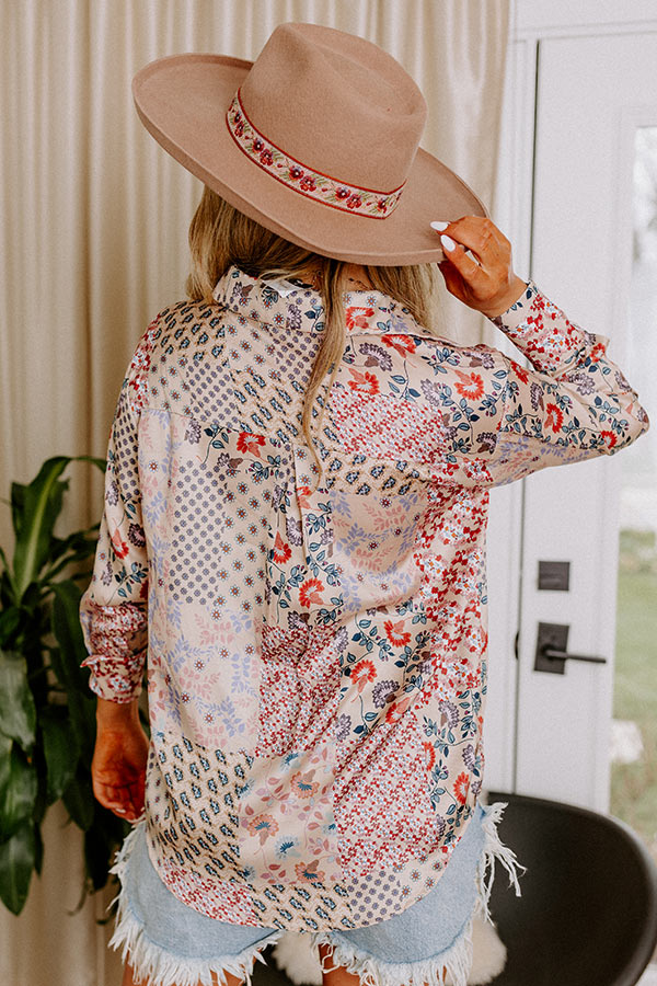 The perfect fall top does exist and it's our beautiful iced latte colored 'Chat With Me' top featuring lightweight satin material patterned with a stunningly colorful floral print, a button down front with a collared neckline, long loose sleeves with button closure cuffs, and a relaxed silhouette that falls into a straight hemline!