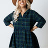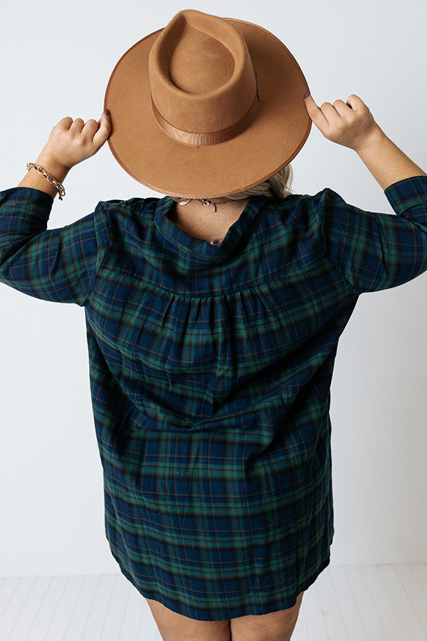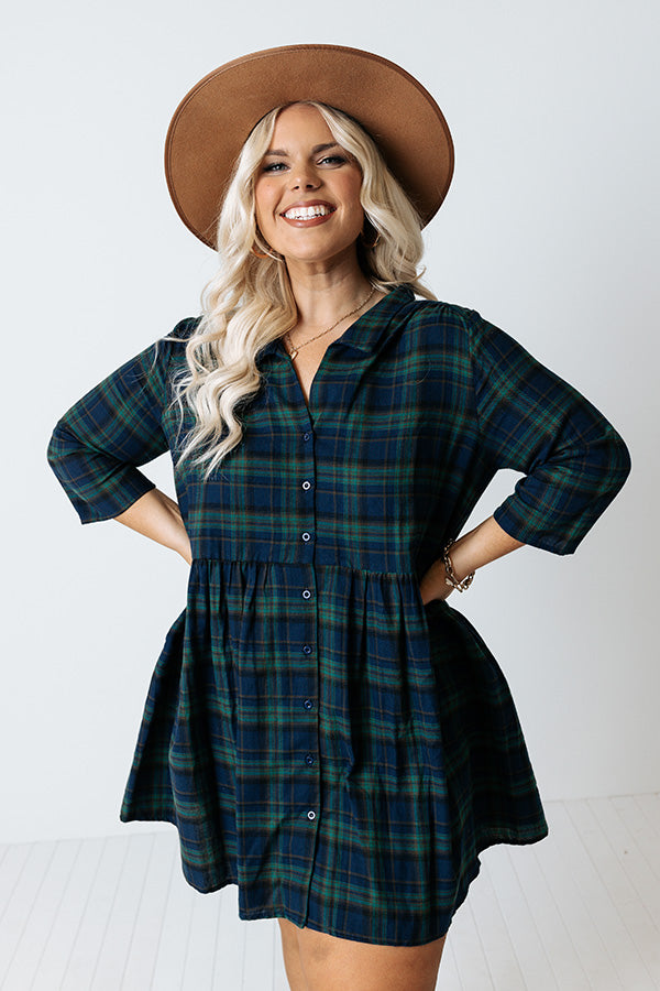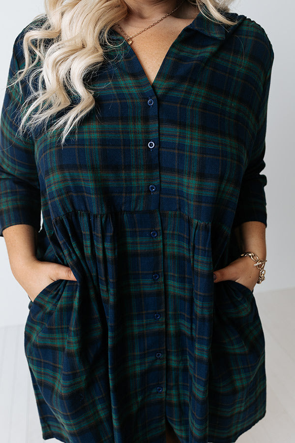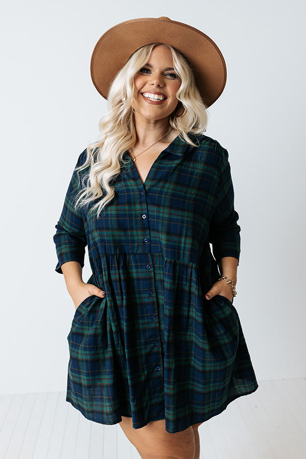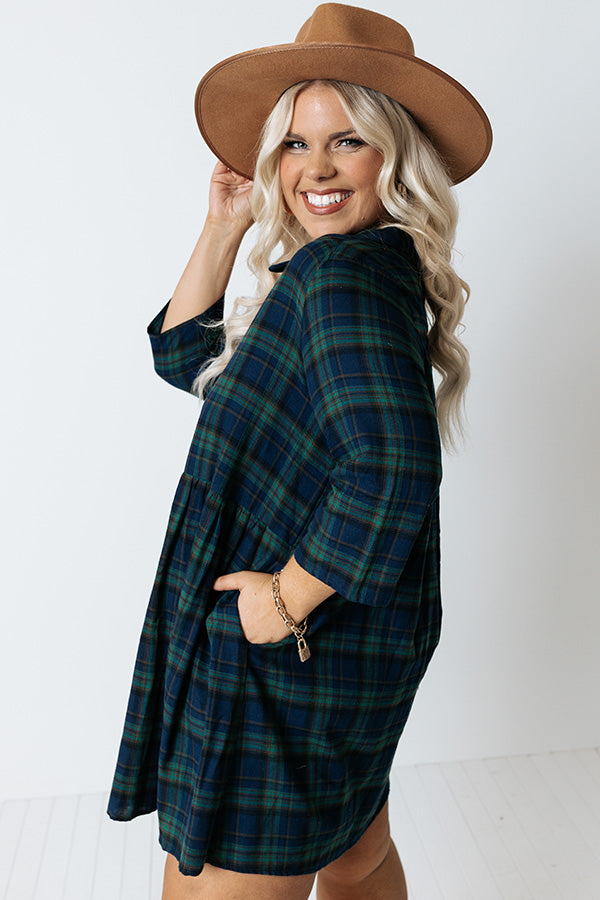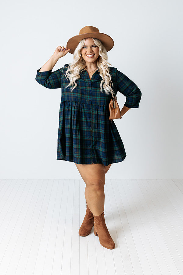 Cheery Mood Plaid Tunic Dress In Green Curves