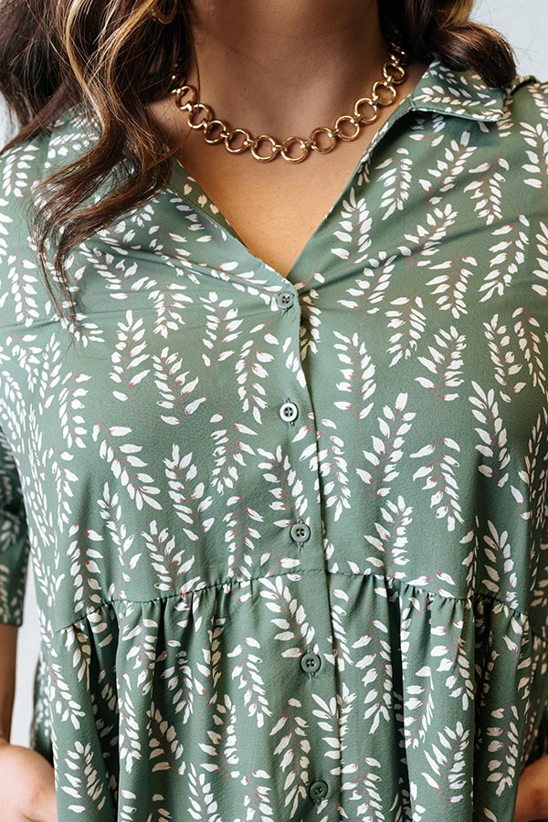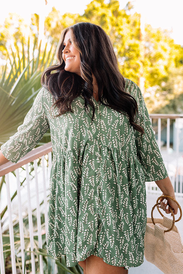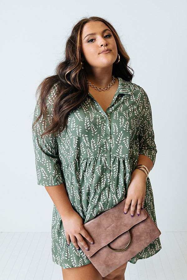 You are sure to be in a cheery mood when you get dressed in this darling pear colored plus size tunic dress featuring lightweight material patterned with a white floral print, a button down front with a collared neckline, loose 3/4-length sleeves, hidden side pockets, and a relaxed silhouette that falls into a straight upper-thigh length hemline!