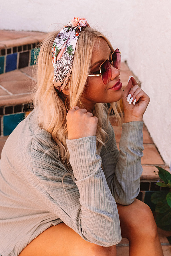 Your OOTD is sure to bloom when you top it off with our adorable peach hued 'Chelsea Market' scarf featuring lightweight satin material patterned with a large multi-colored floral print! This piece is perfect for wearing as a headband, wrapping around your purse handle, or tying around your neck or ponytail!