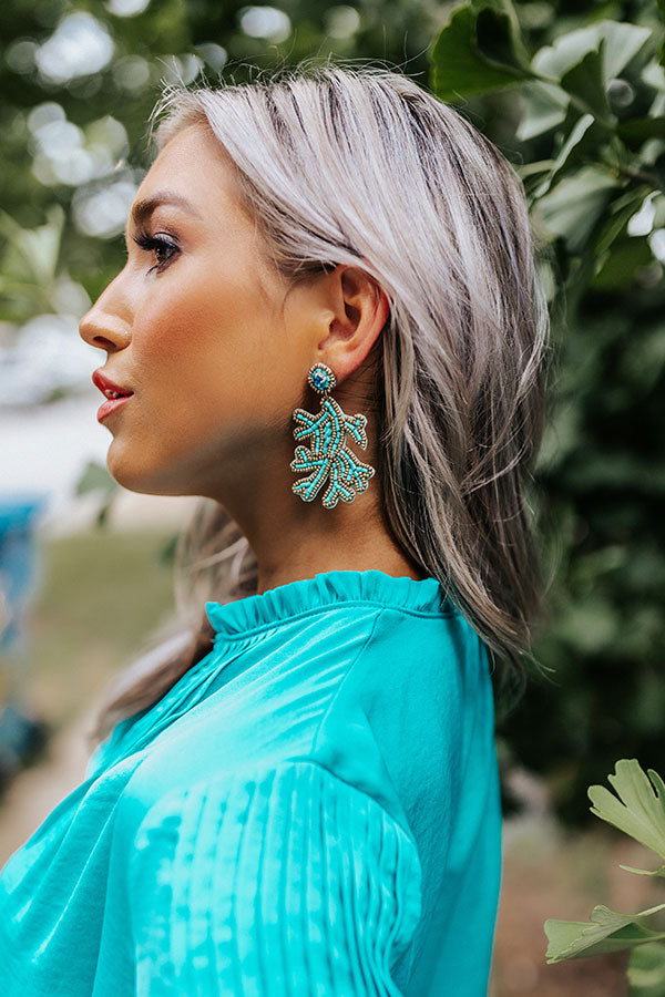 Chic And Charming Beaded Earrings In Turquoise