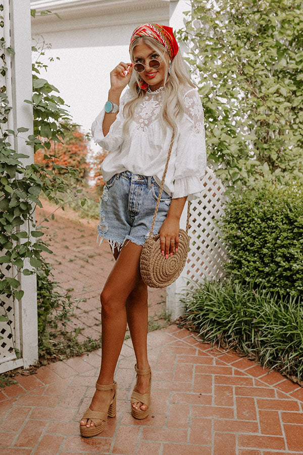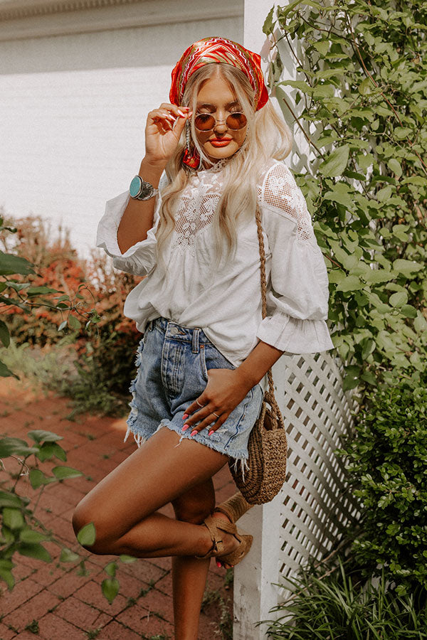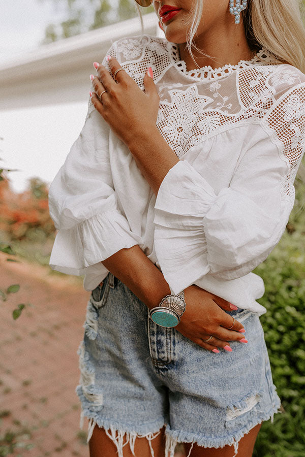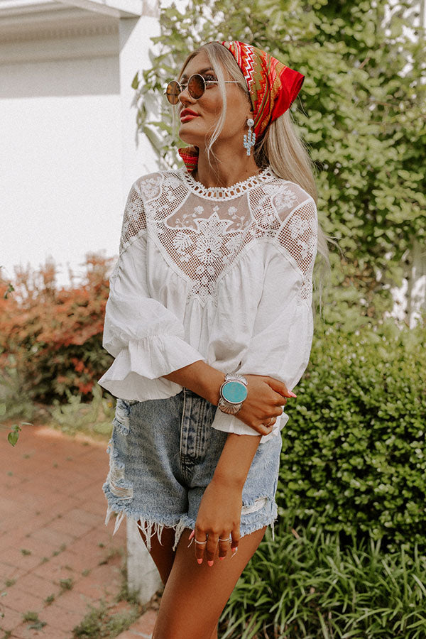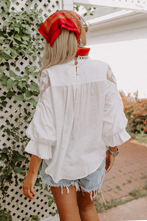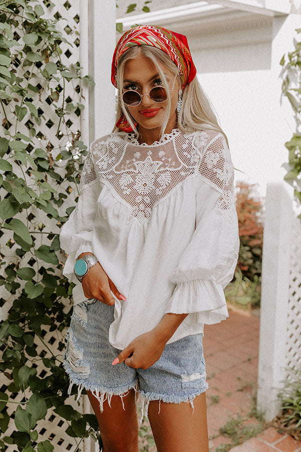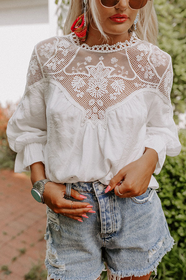 You are sure to look chic and exquisite when you complete your look with this beautiful white shift top featuring lightweight material with intricate lace detailing across the front of the bodice and shoulders, a high neckline, a keyhole accented upper back with a button closure, loose 3/4-length sleeves with flared cuffs, and a relaxed silhouette that falls into a straight hemline!