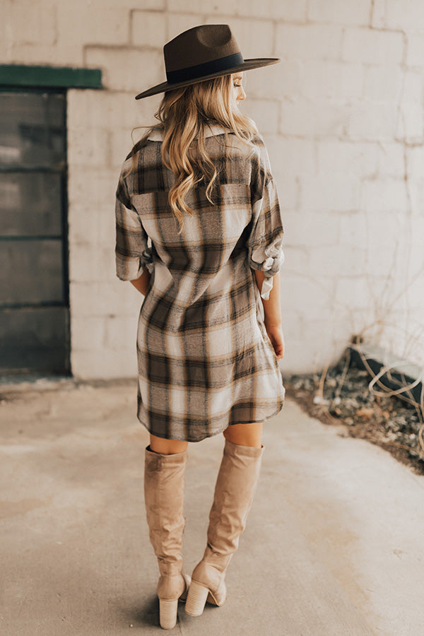 Chic And Stylish Plaid Shift Dress in Martini Olive