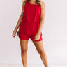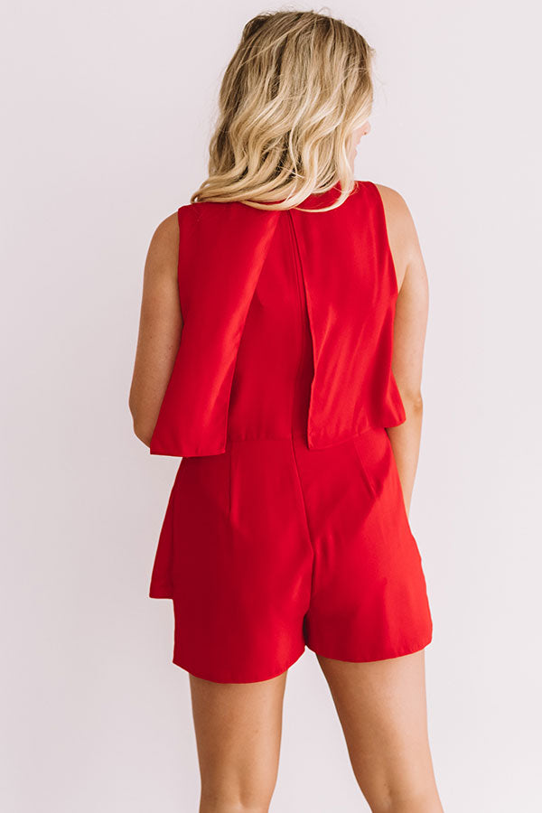 There is no better piece to chase all your "chic aspirations" in than this red romper adorned with three draped tiers, a scooped neckline, 1-inch straps, and zip up back with a slit accent! You can style this stylish piece with a leopard wedge and crossbody or with darker grey accents like our "Beck Espadrille Wedge" and "Lots Of Laughs And Lattes Tote" for a feminine and dynamic summer evening look! Measurements