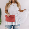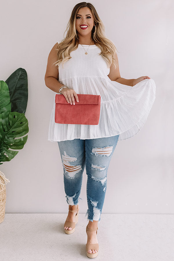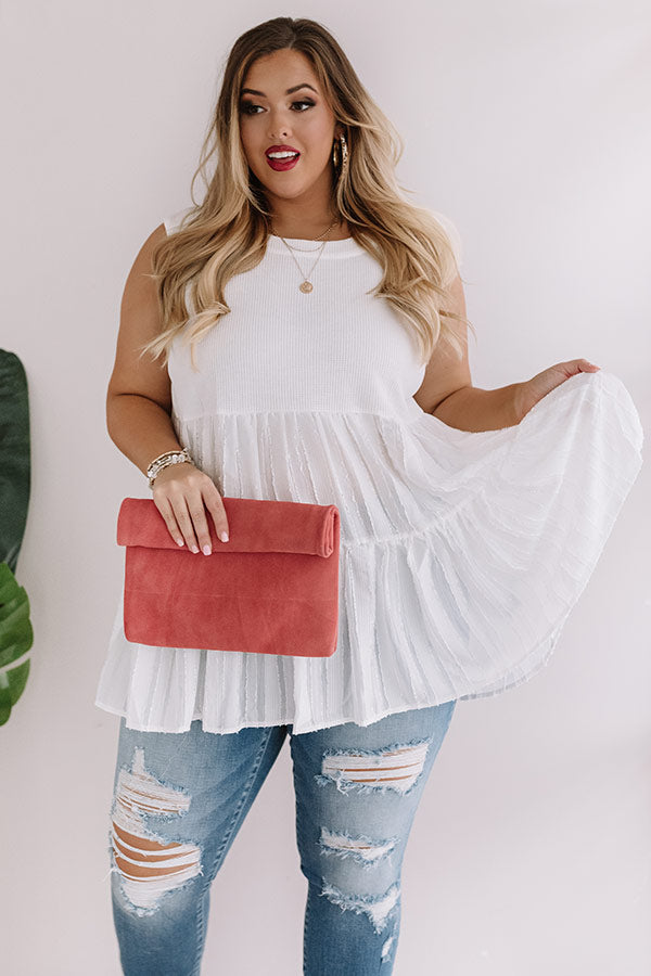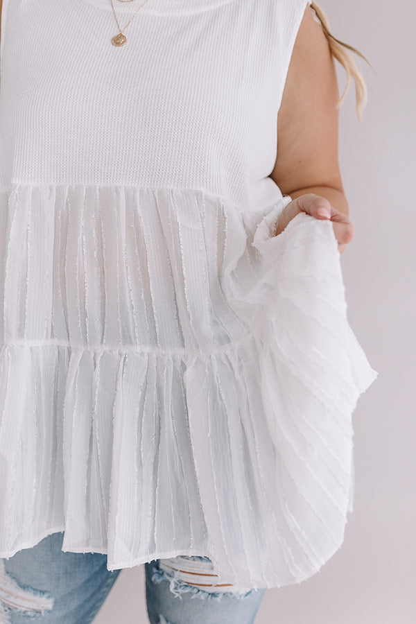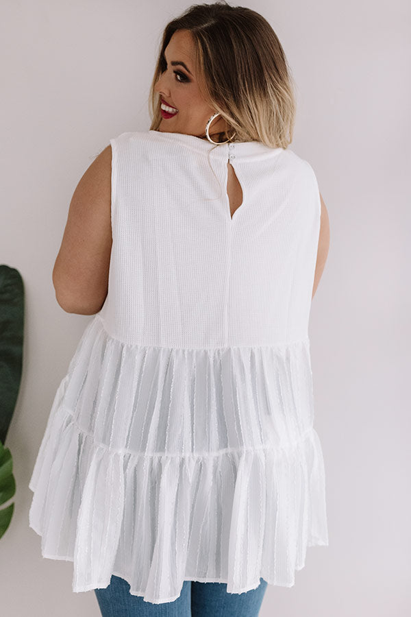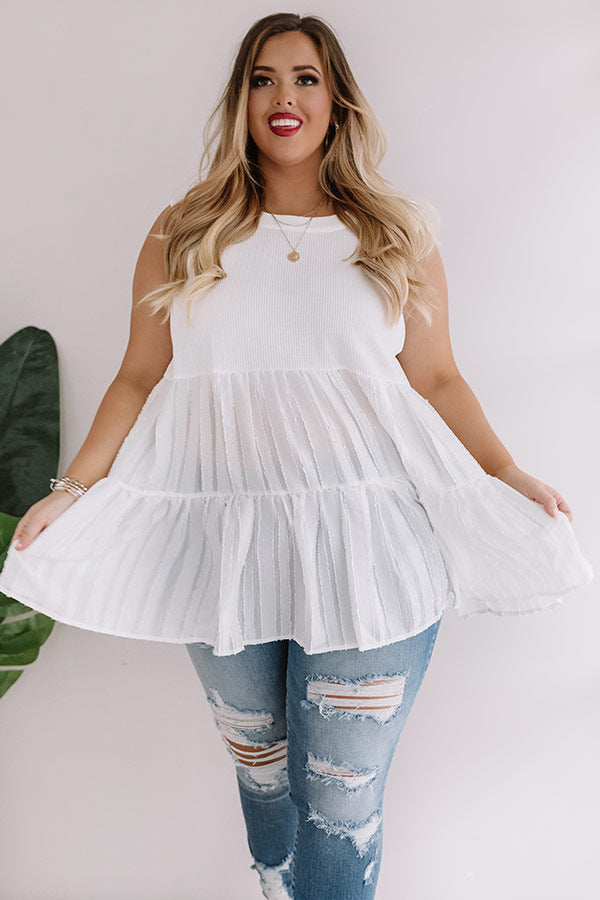 Plus Size - You are sure to look like a "chic city girl" when you wear this adorable white top featuring lightweight material with waffle knit texturing on the bodice, a high rounded neckline, wide shoulder straps, a keyhole accented upper back with a button closure, and an tiered babydoll silhouette that falls into an uneven tunic length hemline! We have styled this cutie with some distressed ankle skinnies, neutral wedges, and a pink clutch, but you can also wear it with some dark wash flares, "The Jess Faux Suede Heel in Grey," and our "All Caught Up Headband in Grey!" Measurements