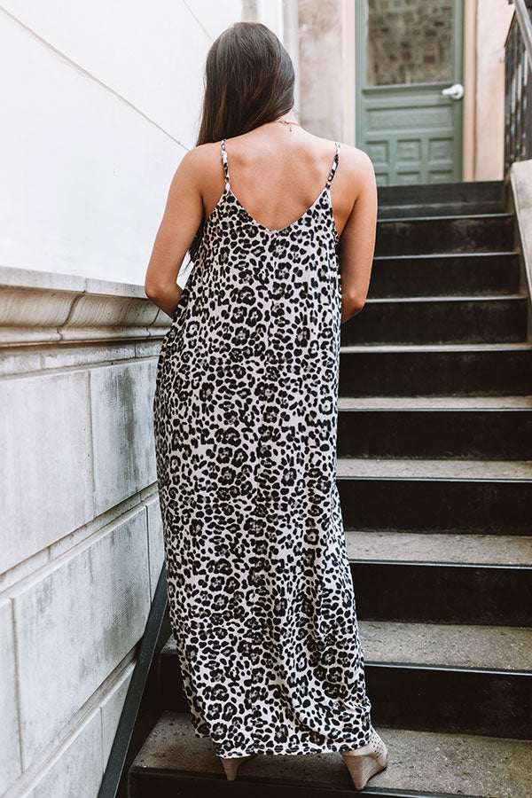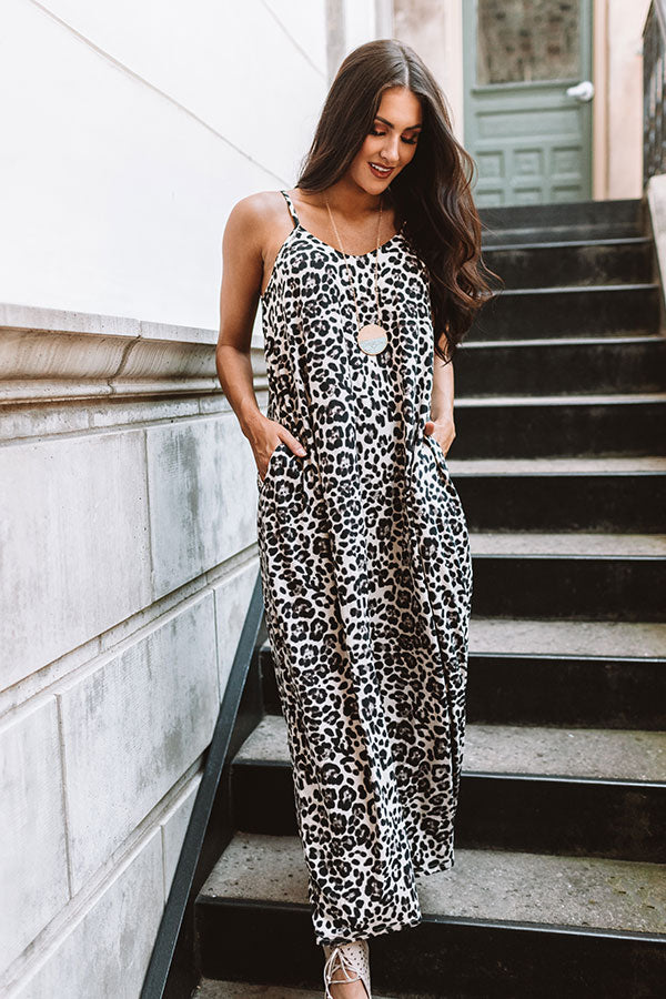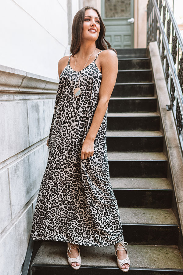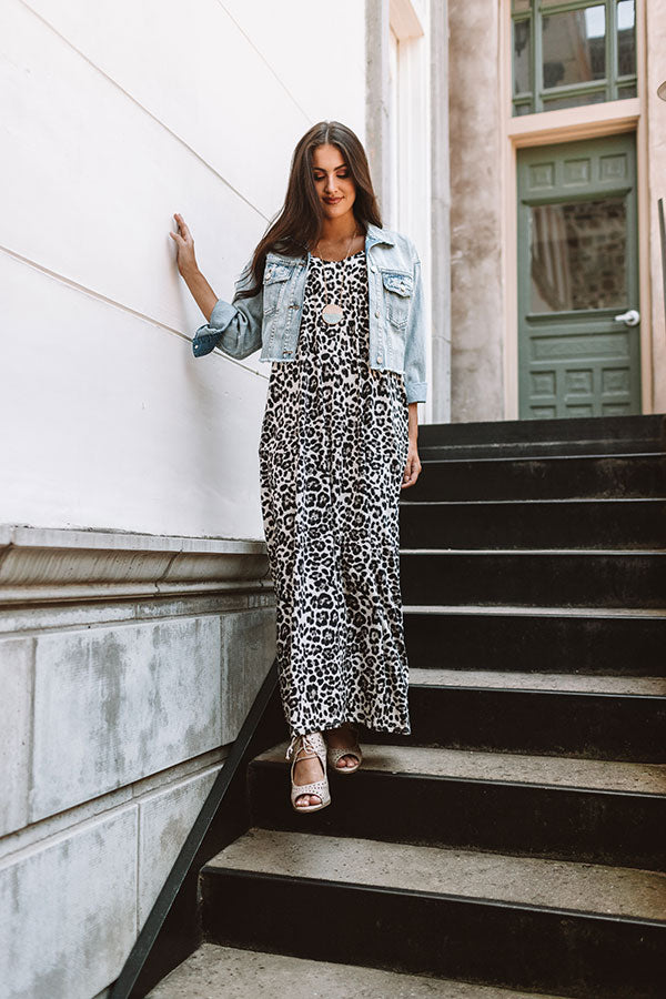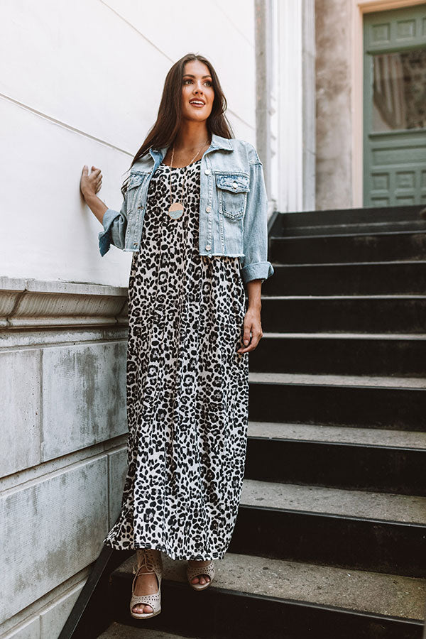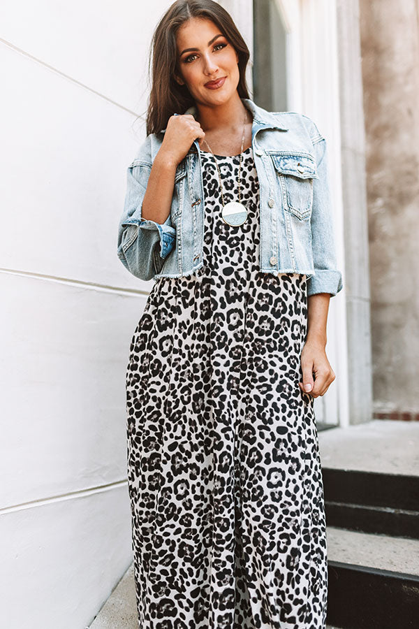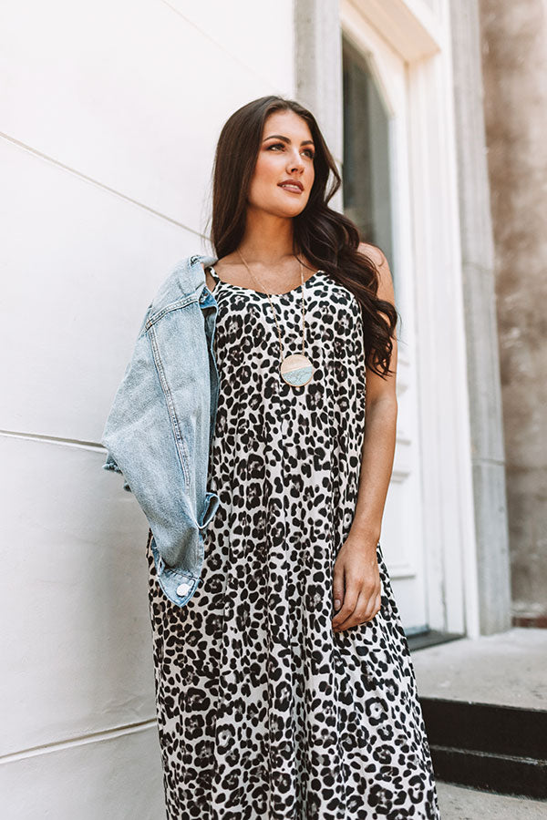 There is no doubt you will have "chic city style" when you wear this ivory maxi adorned with a gorgeous leopard pattern, extra flowy fit, scooped neckline, a v-back, and adjustable spaghetti straps! This eye-catching piece can be styled with cutout wedges and a long necklace for summer, or you can tie up the hem on one side, throw on a cropped denim jacket and "The Cassandra Bootie in Black" for a transitional fall outfit! Measurements