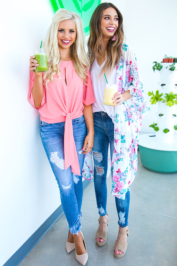 Create the ultimate girls night out look with a sassy pair of heels & this chic cosmo-worthy cutie! This top features a keyhole accented upper bodice, flirty flounce sleeves & a cropped tie-front bottom hem that meets right at the waistline of your jeans.� Measurements