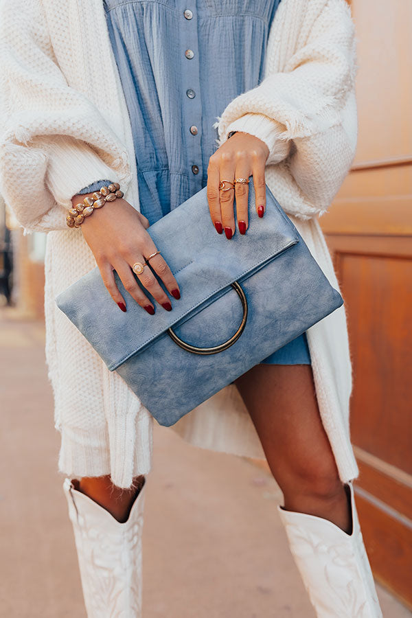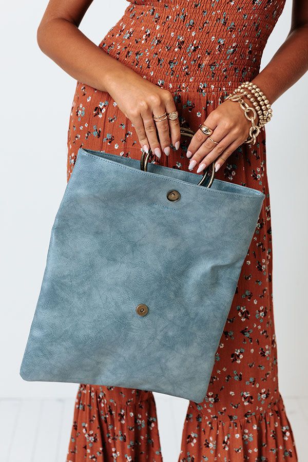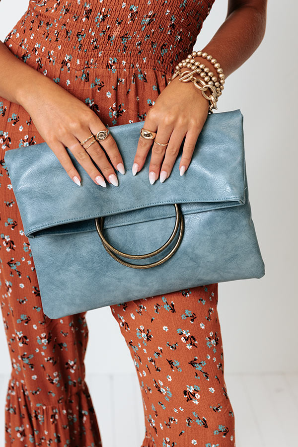Effortlessly look chic with this pretty airy blue colored clutch featuring lightweight faux leather material, a flap closure with two metal handle accents and a snap button, and a spacious rectangular silhouette that's perfect to just grab and go with!