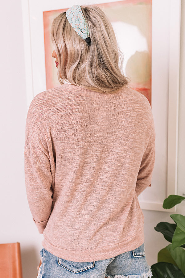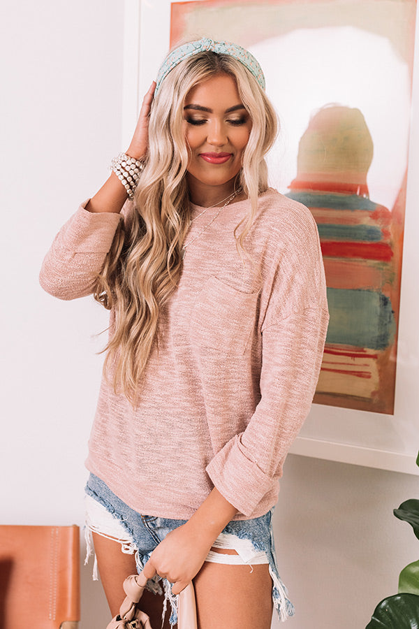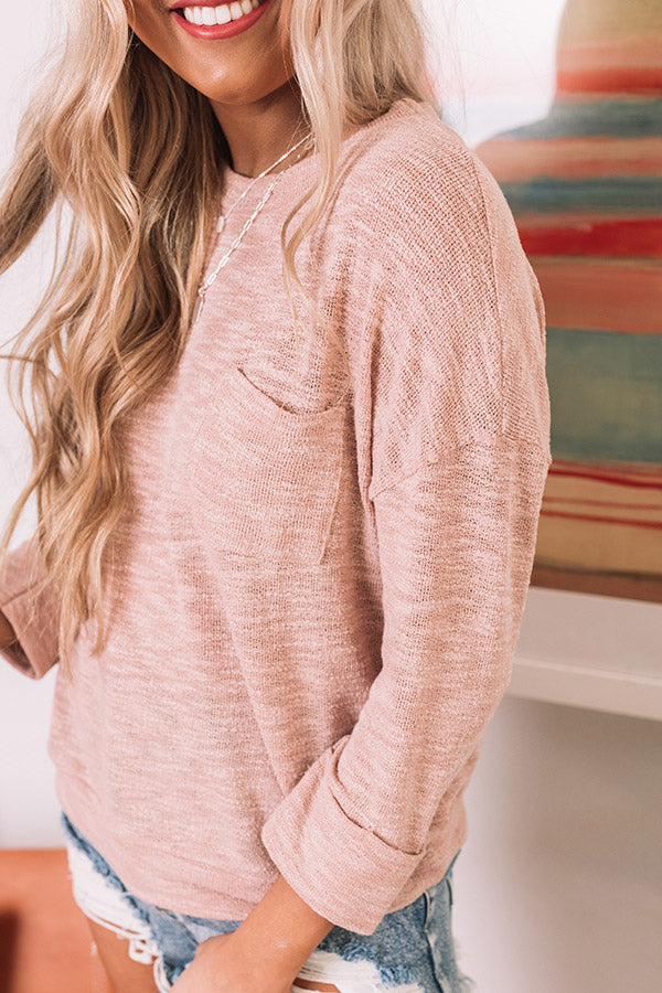You will undoubtedly look chic forever when you wear this casual cute blush colored top featuring soft ultra lightweight tight knit material, a high neckline, loose 3/4-length sleeves, a single accent chest pocket, and a slouched silhouette that ends in a straight hemline!