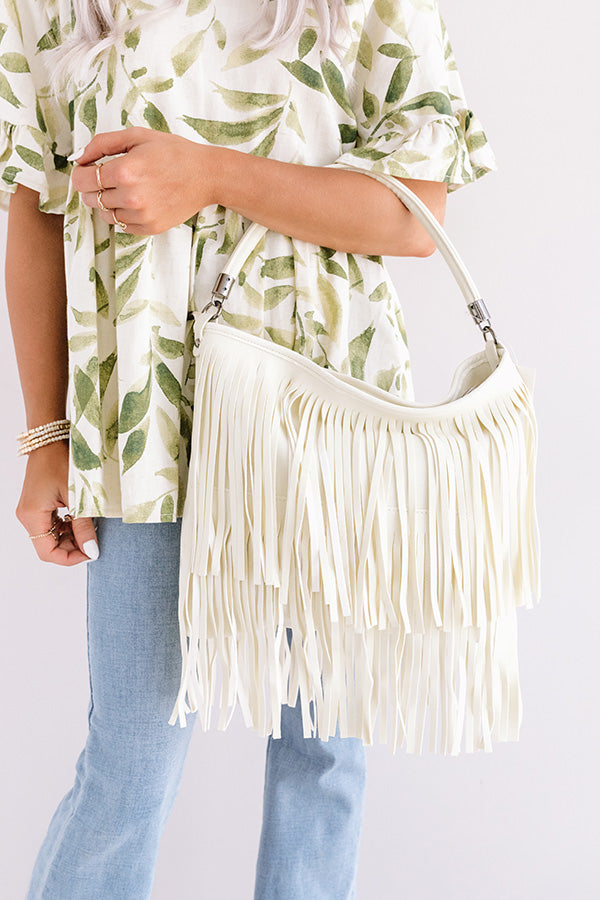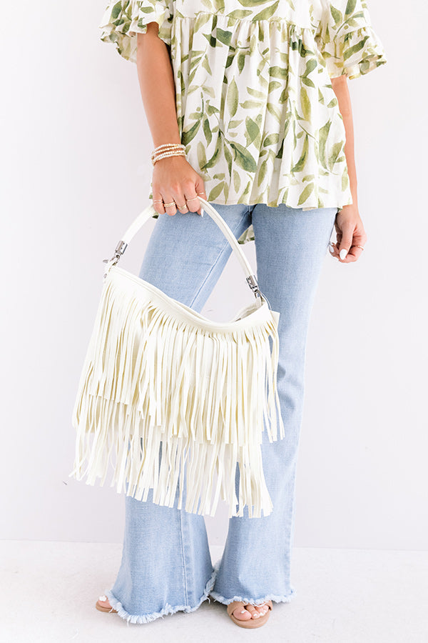 Chic Harmony Fringe Tote in Cream