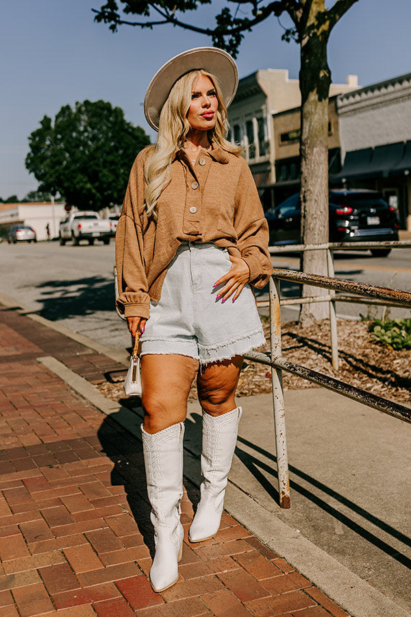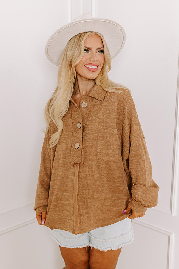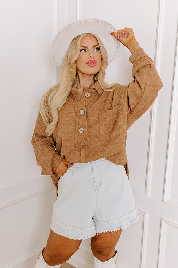 Chic Harvest Knit Henley Top in Mocha Curves