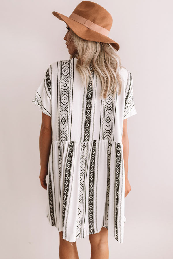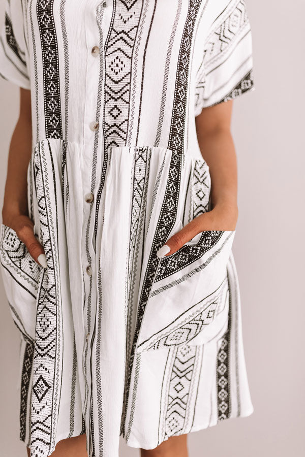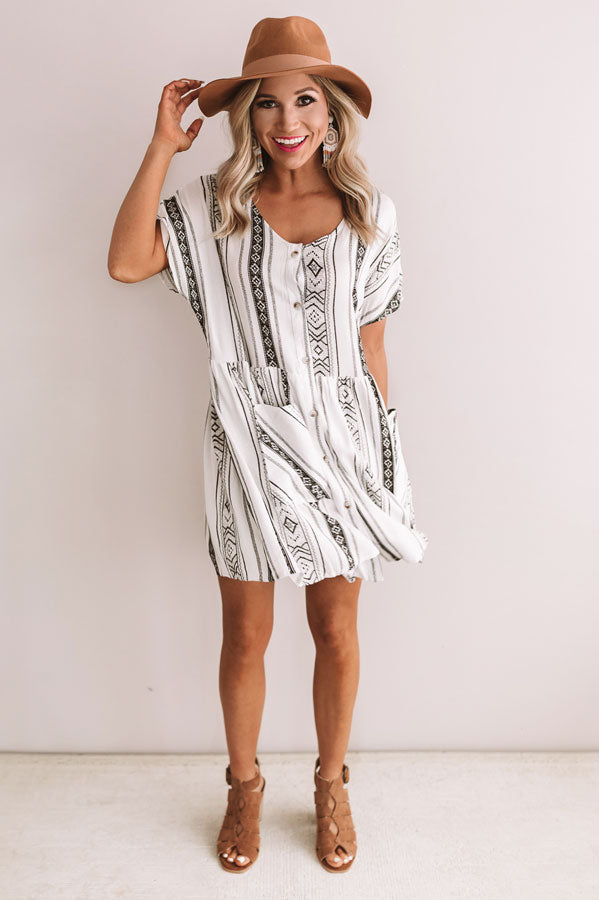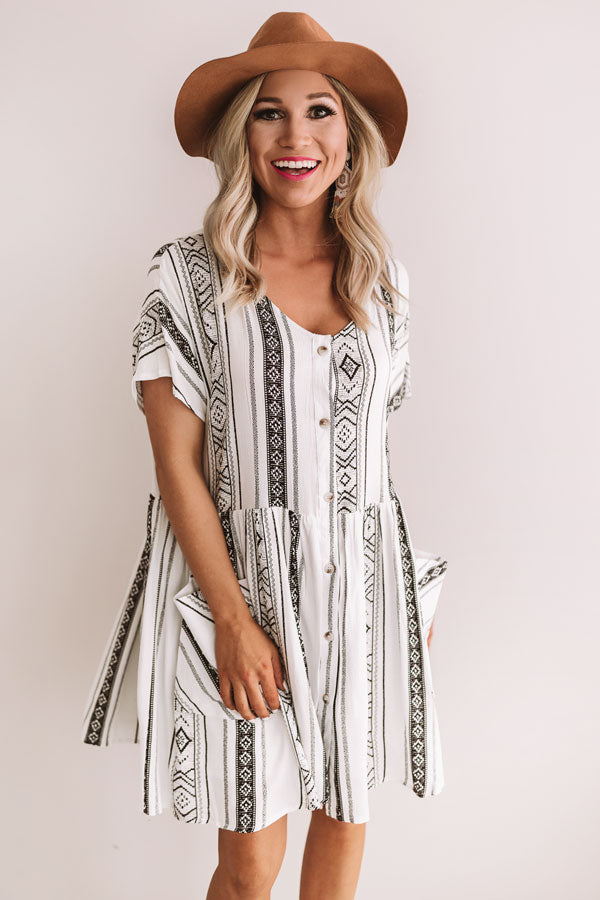 You're beautiful no matter what you wear and this shift dress will have you feeling chic while on vacation with its aztec print stripes and skirt pockets! Pair it with a statement hat and some dainty earrings for an unforgettable summer look! Measurements