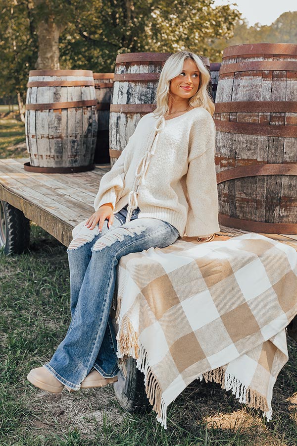 - Tie your look together with this cozy cutie! With its trendy tied front and warm material, it's the perfect combo of style and comfort. Show off your fabulous fashion sense all season long with this adorable piece!