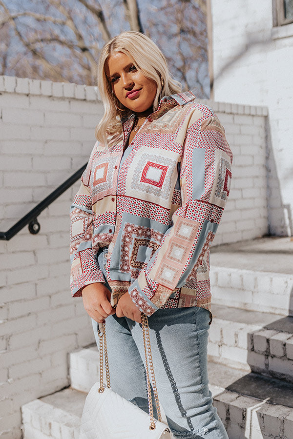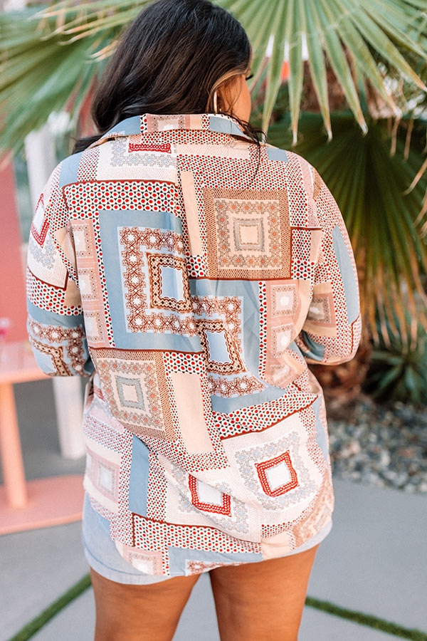 You will look so chic on the scene in this classy plus size top featuring lightweight material patterned with an intricate airy blue and natural hued print, a button up front with a collared neckline, long loose sleeves with button closure cuffs, and a relaxed silhouette that falls into a rounded hemline!