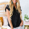 The "Chic Retreat" top is sure to become your new favorite travel companion! This classic cutie has a collared neckline, short cuffed sleeves & a relaxed button-down bodice with front accent pockets. Pair this top with your favorite denim for the perfect afternoon look for all of your weekend adventures!