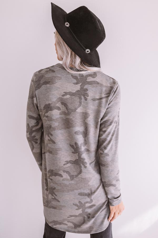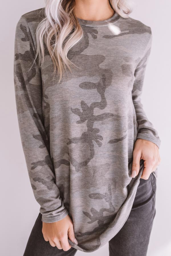You will no longer have to "hunt" for the perfect transitional piece when you add our "Chic Selection" tunic top to your cart with its soft ultra lightweight material patterned with a grey and green hued camo print, a high rounded neckline, long fitted sleeves, and an ultra relaxed silhouette that falls into a rounded upper-thigh length hemline! You can style this casual cutie a variety of different ways, like with some flares and a black bootie, backpack, and faux suede hat, but you can also wear it with some distressed light wash skinnies and "The Seraphina Faux Leather Wedge in Grey!" Measurements