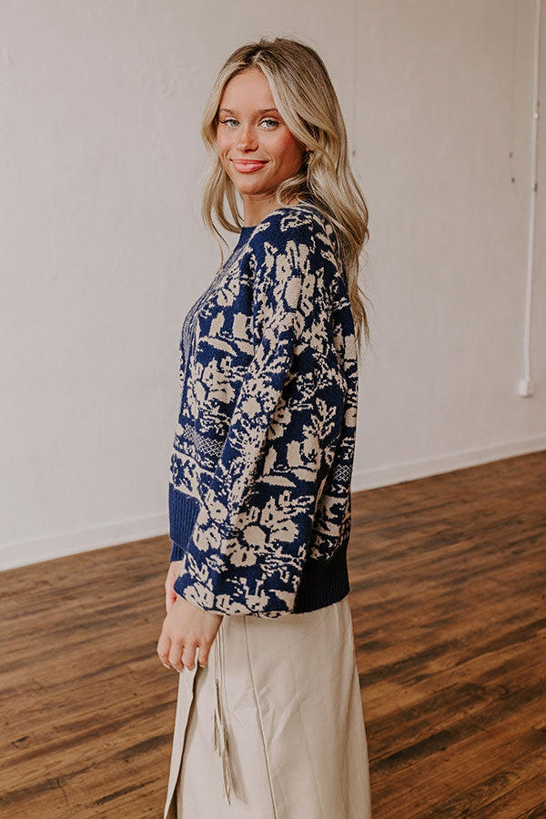 - Make a chic statement on this cost sweater! With its beautiful floral design and charming energy, it's perfect for tying together a stylish look. Style it with a cute skirt and boots and you're ready to turn heads.