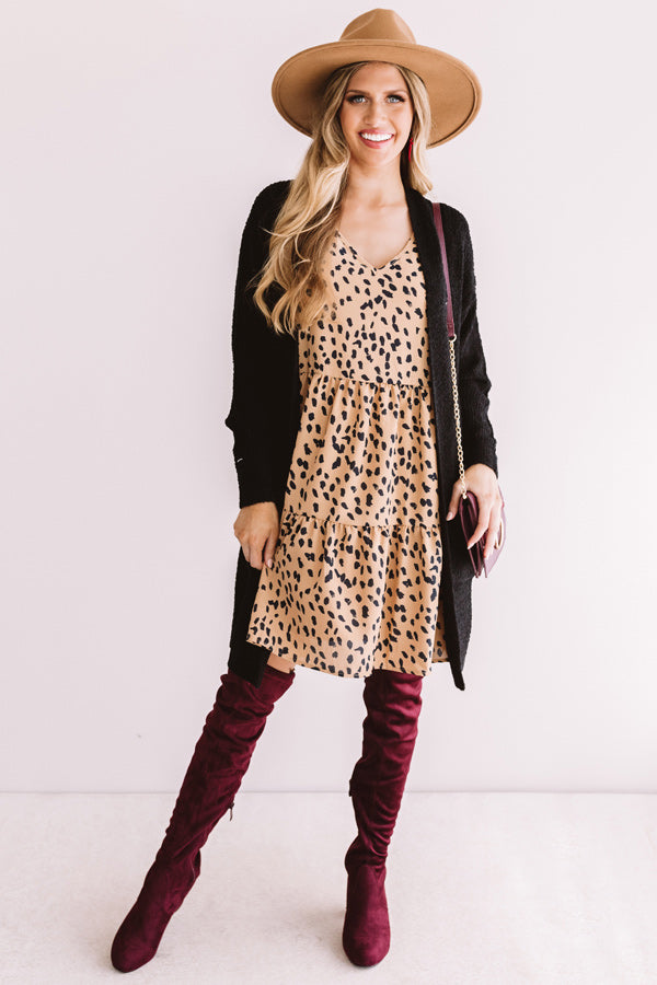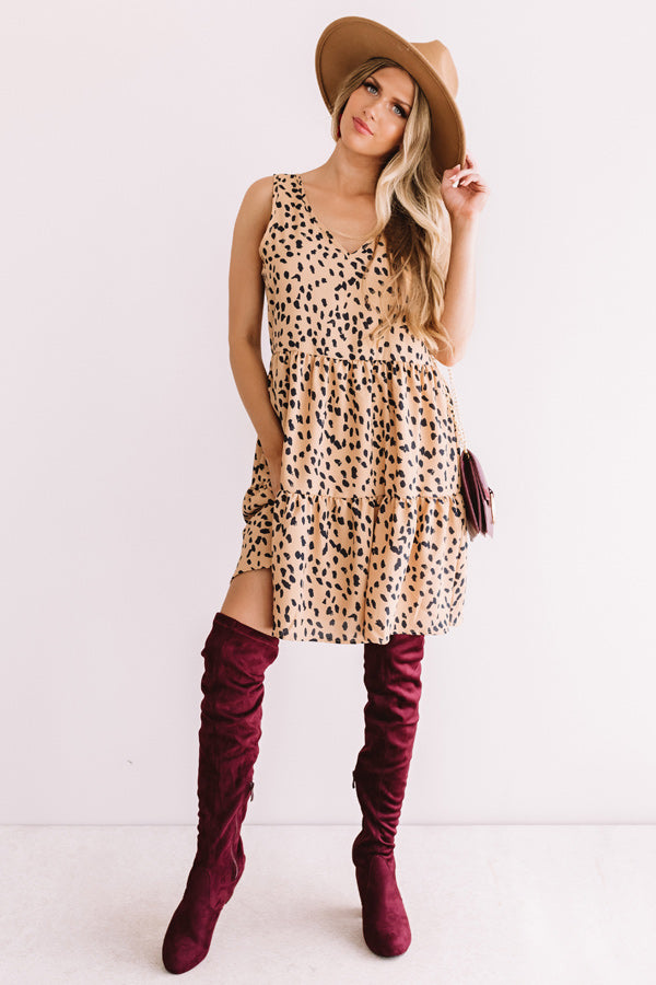 Chic Success Leopard Babydoll Dress In Iced Latte
