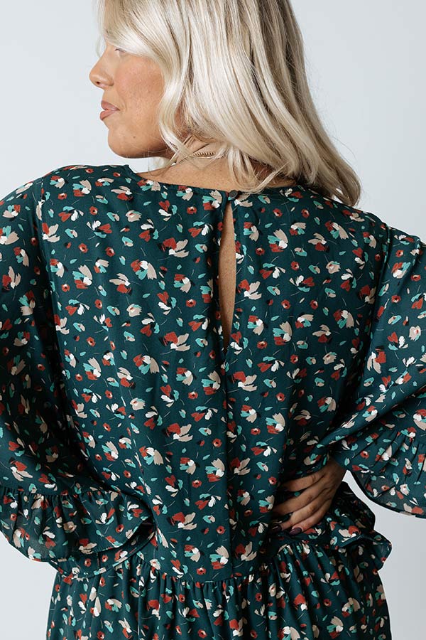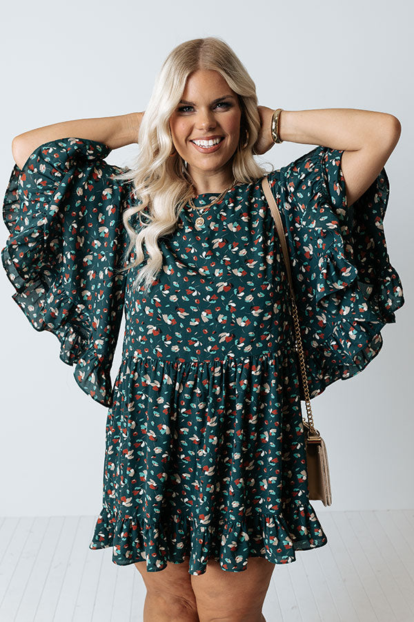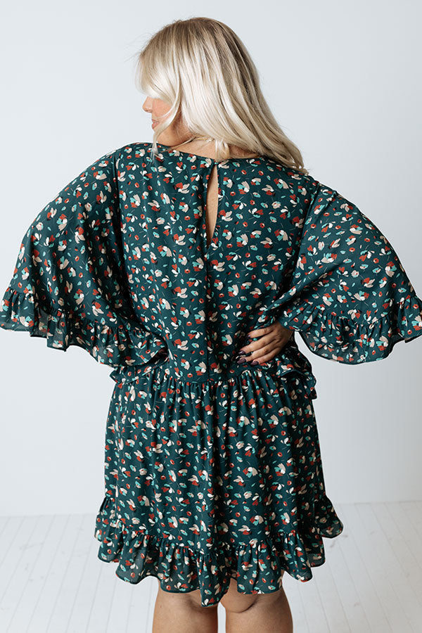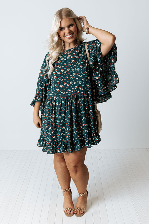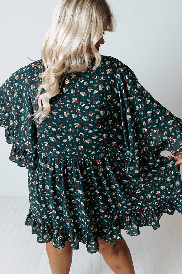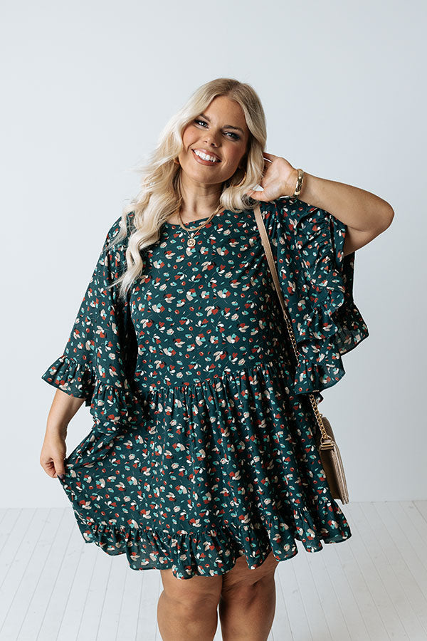You will look like one chic sweetheart when you arrive in this darling forest colored plus size shift dress featuring lightweight flowy material patterned with a pretty floral print, a rounded neckline, loose 3/4-length sleeves with oversized ruffle trim detailing, a keyhole accented back with a button closure, and a relaxed silhouette that falls into a ruffled mid-thigh length hemline!