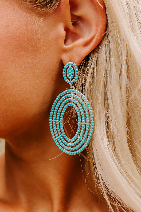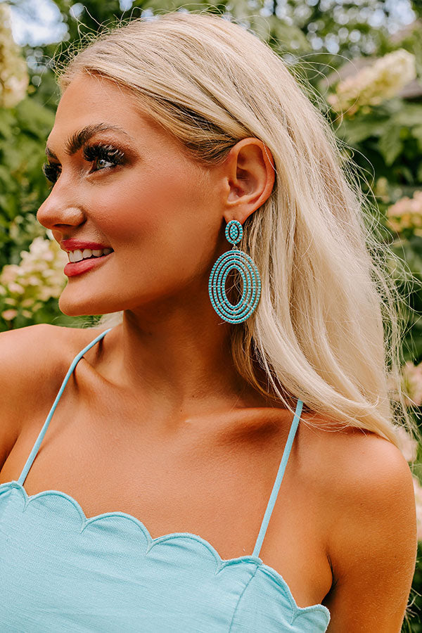 - Turquoise colored beaded earrings with a stud and drop hoop design