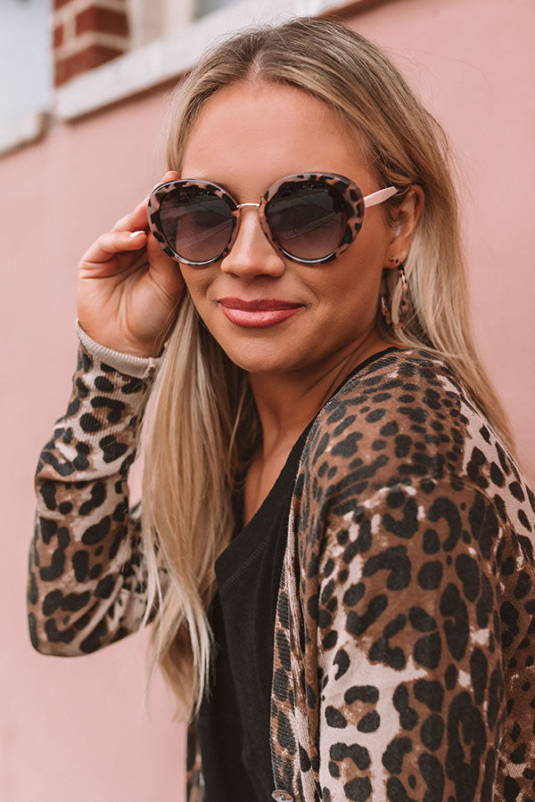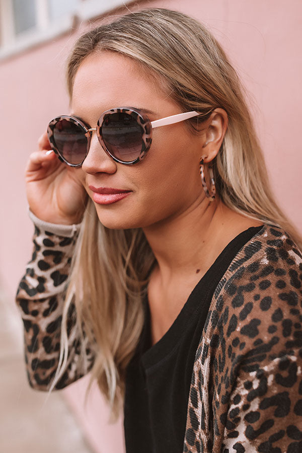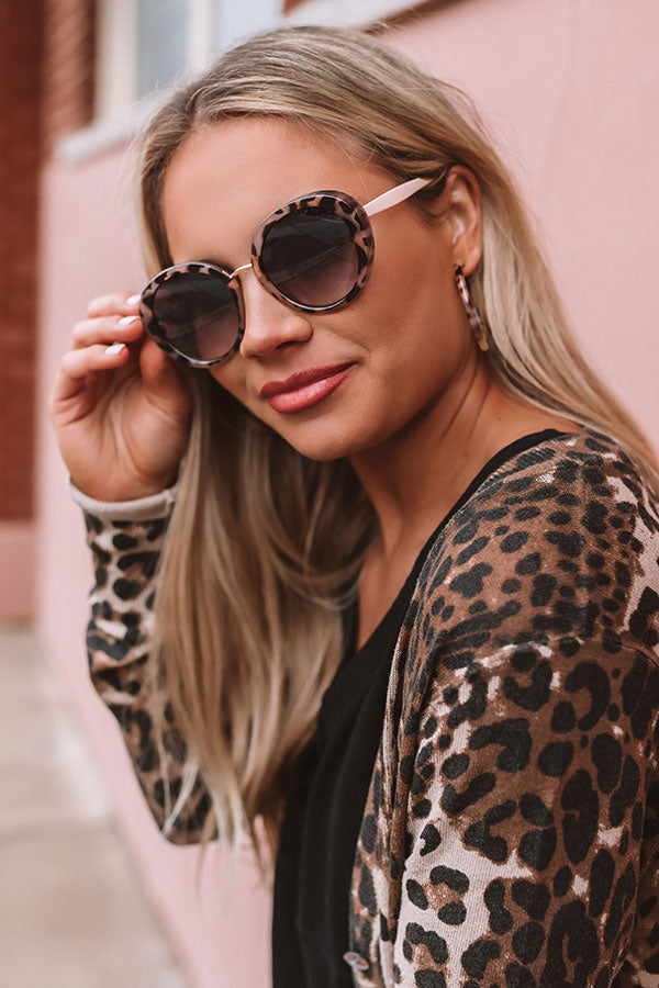 There is no better way to look chic on the weekend than by wearing these adorable sunnies featuring thick tortoiseshell print frames, a gold nose bridge, natural hued ear pieces, and dark tinted lenses!