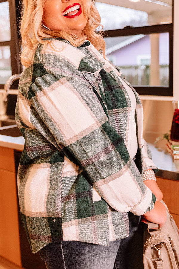 Chicago Kisses Plaid Jacket In Hunter Green Curves