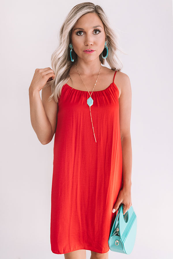 Say yes to summer fun in this chic satin dress! With its breezy fit and adjustable spaghetti straps, you will have your best summer yet while rocking it! Plus you don't have to worry about having full coverage because this dress has an attached inner slip! Measurements