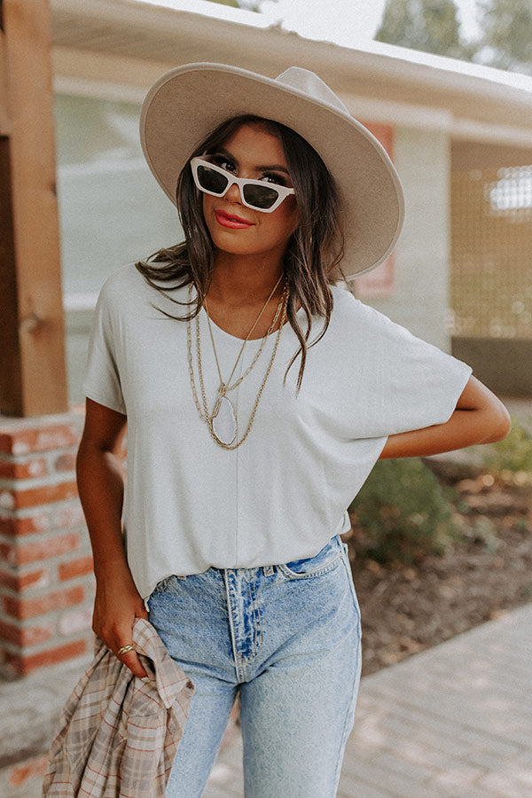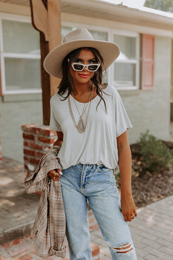 The perfect weekend piece, our light grey 'Chill On The Horizon Shift Top' features soft lightweight material, a scooped neckline, loose short sleeves, and a slouched silhouette that ends in a rounded hemline!