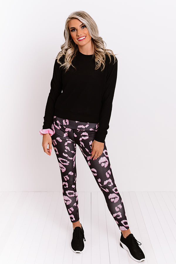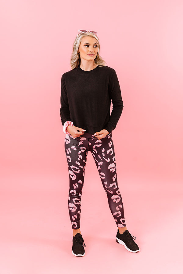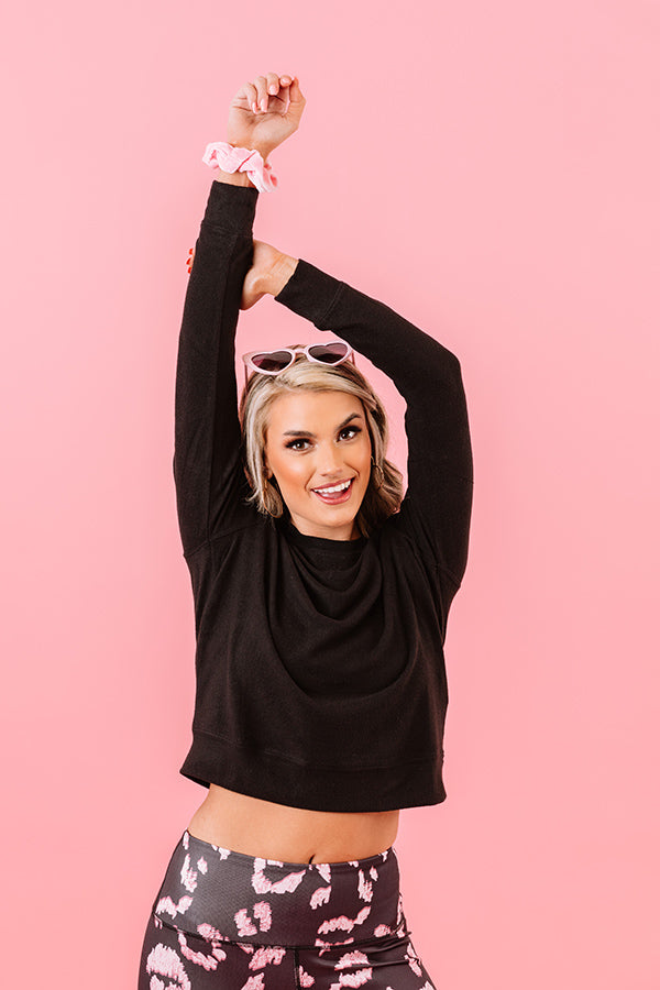 Keep your galentine's OOTD chill with this simple black sweatshirt featuring soft lightweight material, long loose sleeves with fitted cuffs, a high rounded neckline, and a slouched silhouette that ends in a straight hemline!
