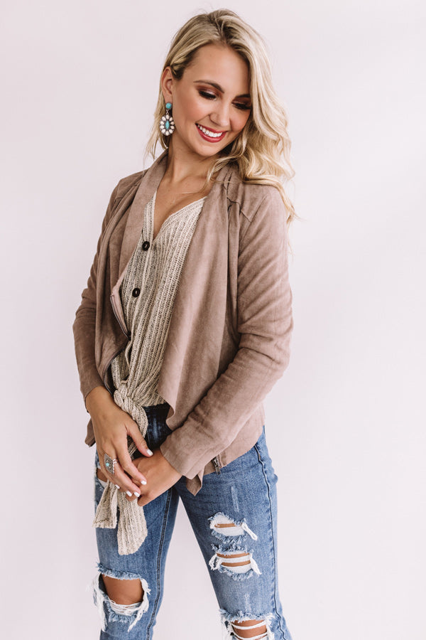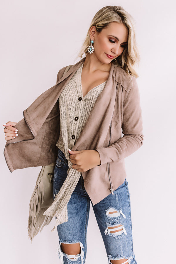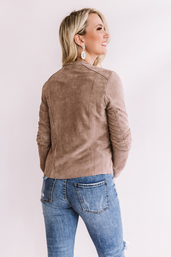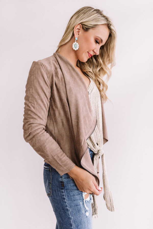 Chills In Chicago Faux Suede Jacket In Taupe