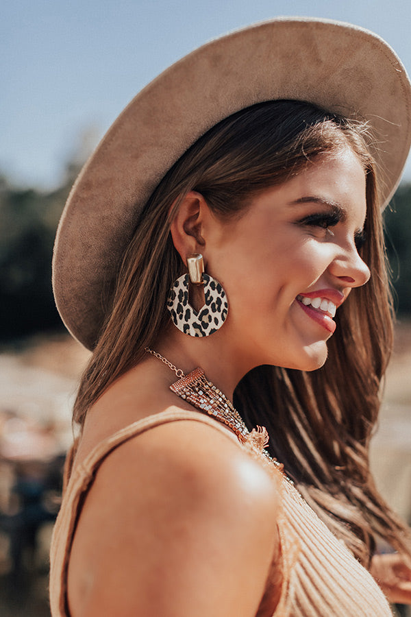 Wow the crowd with our ivory colored "Cider Smiles" statement earrings featuring thick gold posts with wide black leopard print hoops!