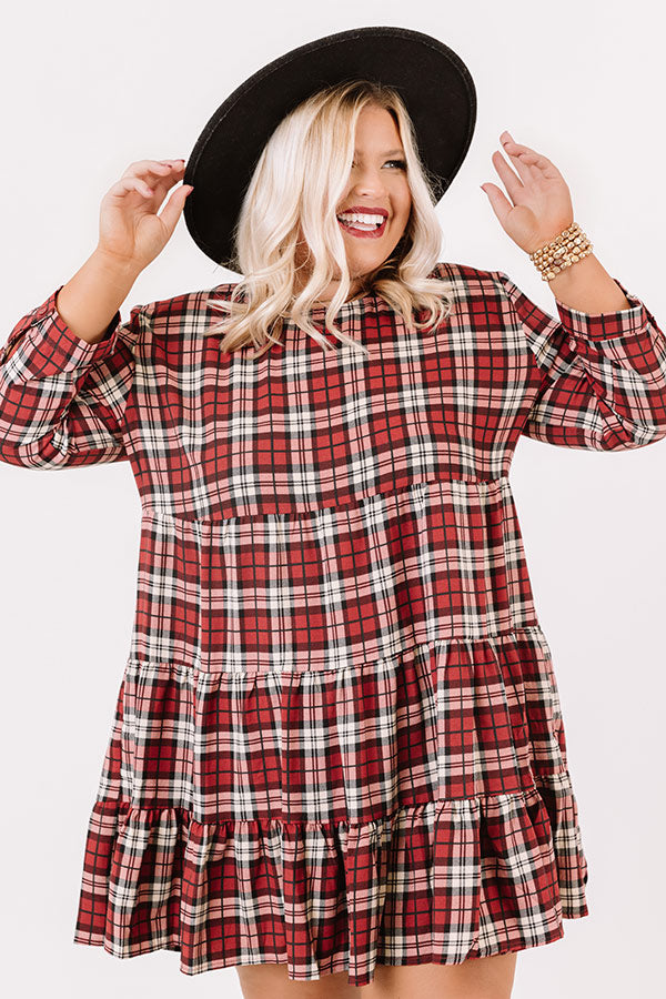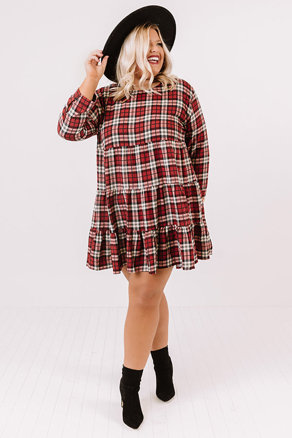 Cinnamon And Spice Plaid Babydoll Dress In Wine Curves