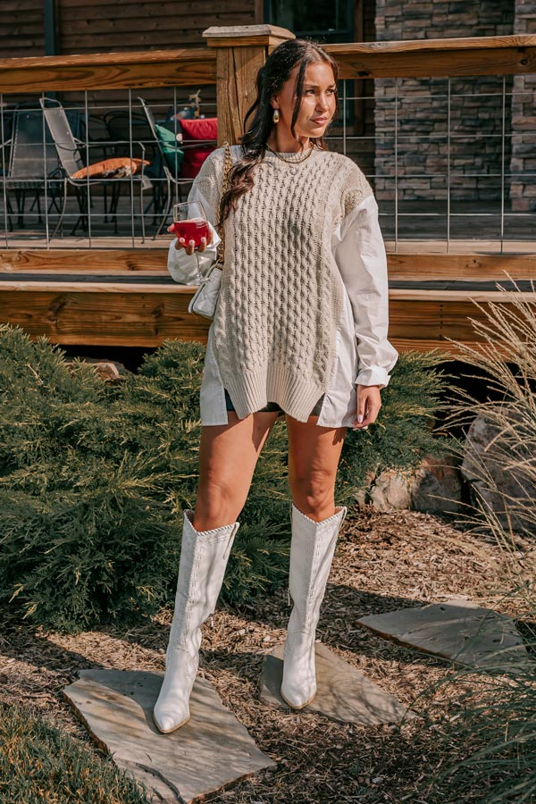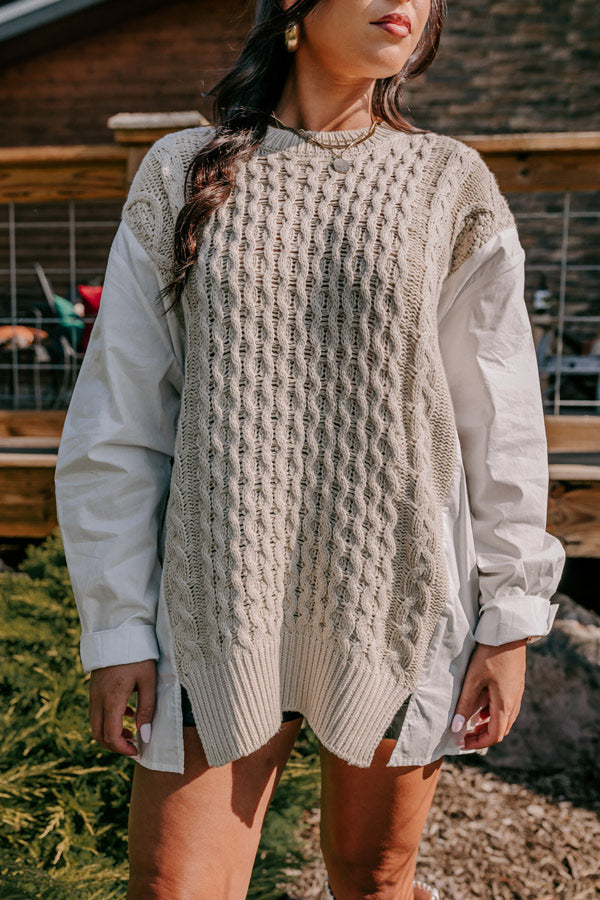 - Cable knit material as well as soft lightweight material at the sides and sleeves