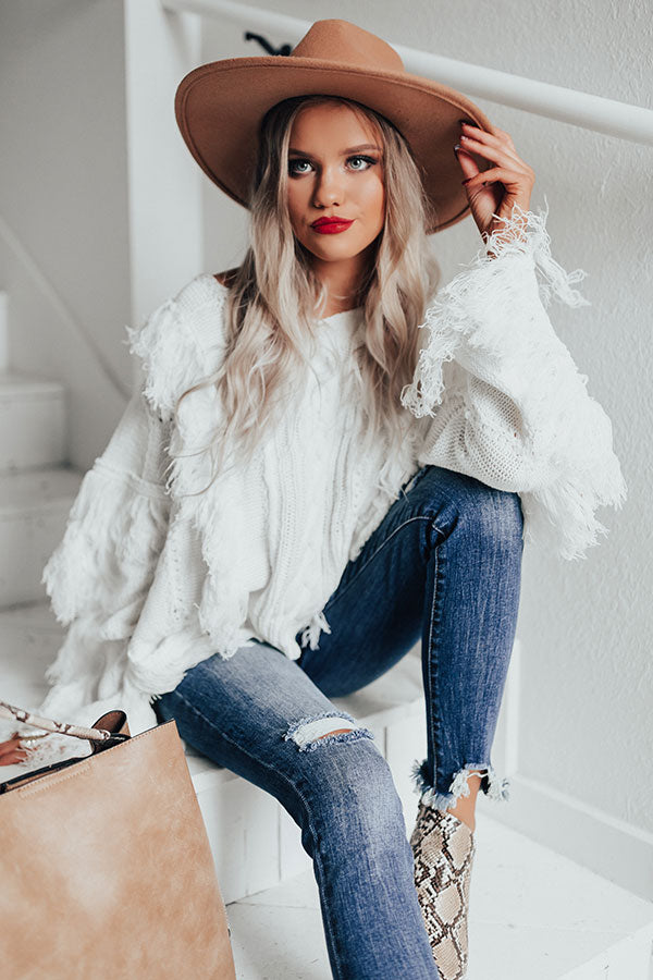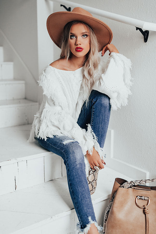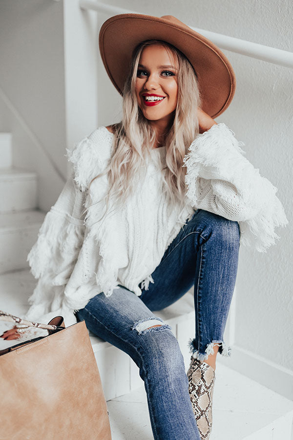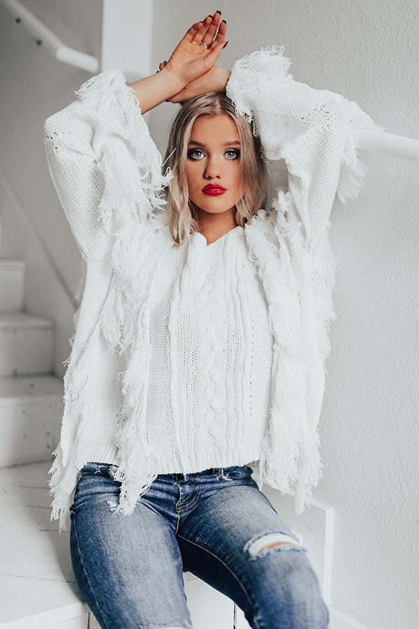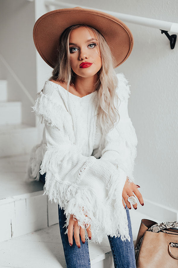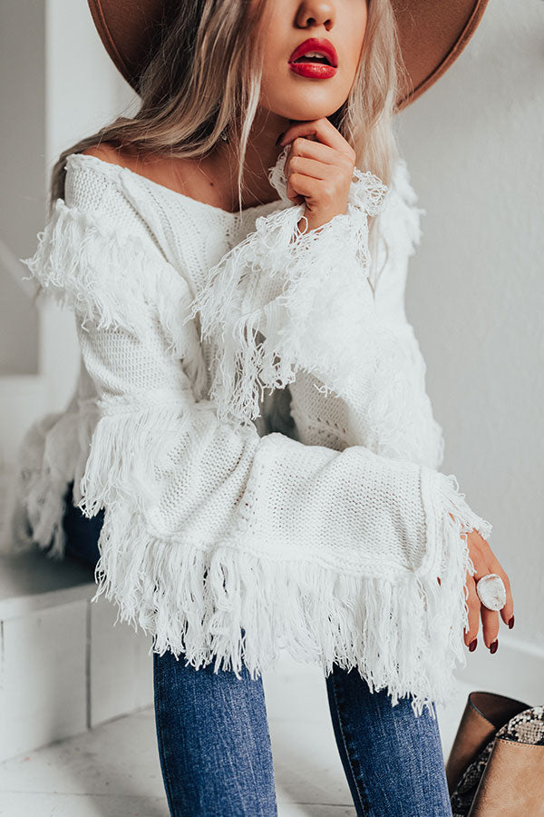 Cinnamon Sugar Kisses Fringe Sweater In White