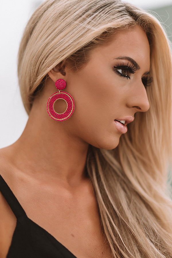 You are sure to steal the show when you accessorize with our adorable hot pink "City Bliss" statement earrings featuring beaded half ball studs and dangling hoops!