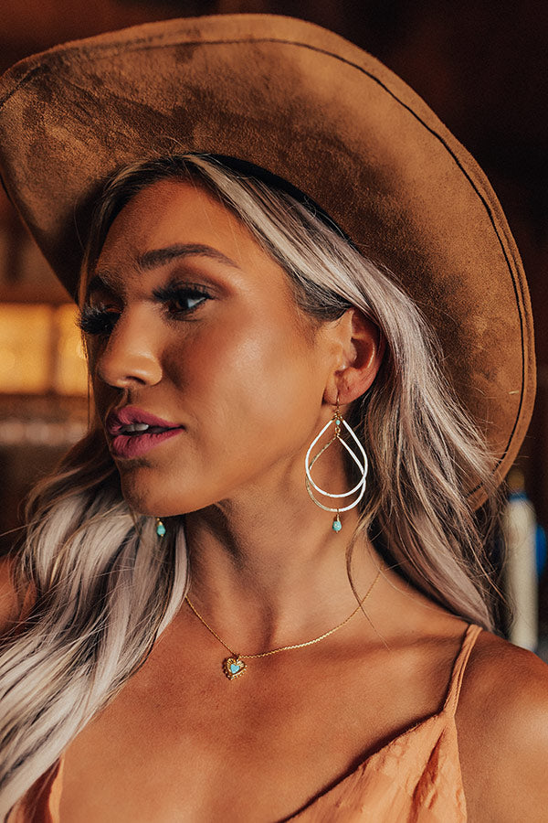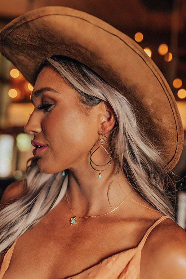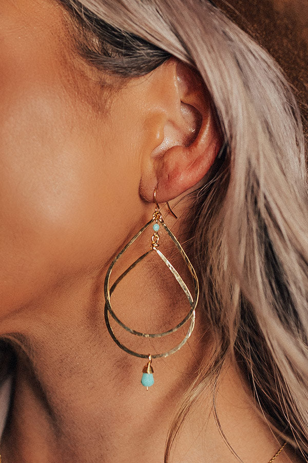 Take your look to the next level with our pretty 'City Meetup Earrings' featuring two dangling gold teardrop hoops with a tiny turquoise bead detail!