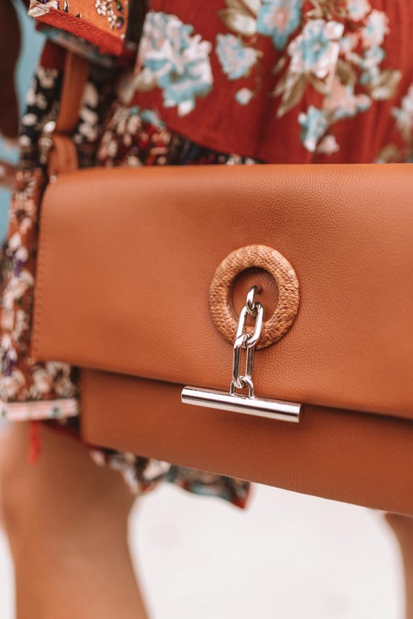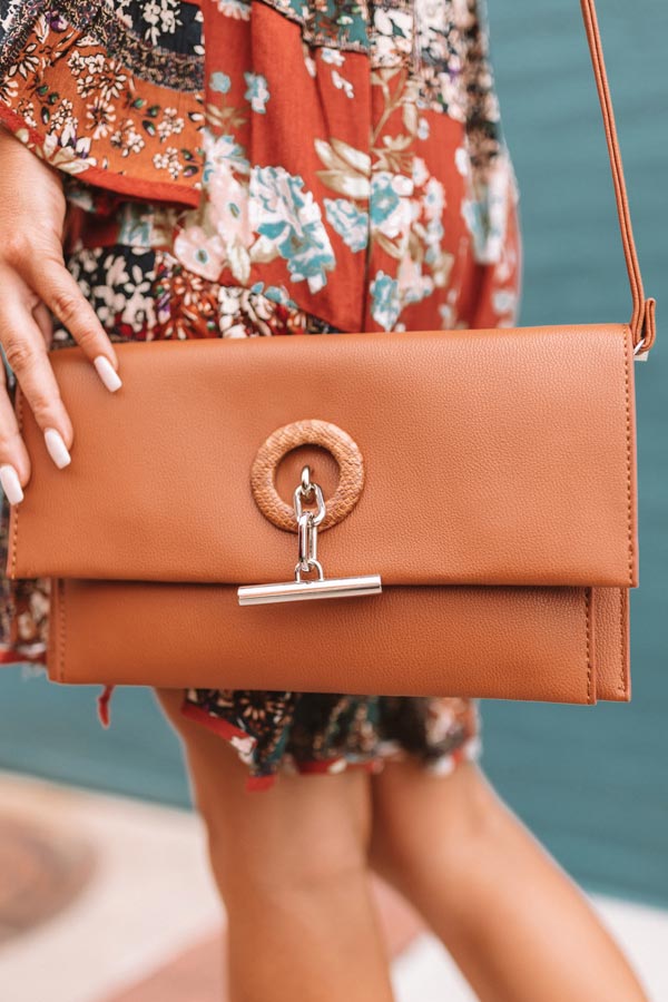 Stay stylish during those nights in the city with this maple clutch featuring a faux leather material, a zippered inner pouch and an open inner pocket, a fully lined interior, and a flap closure with two snaps and an additional snake print and bar accent! PLUS, it includes a removable and adjustable crossbody strap!