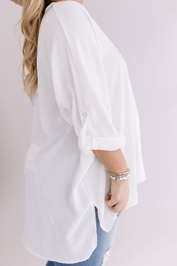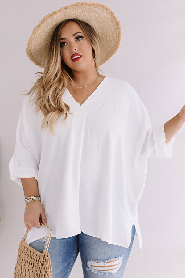 Plus Size - You will without a doubt look "city sleek" when you wear this adorable white shift top featuring ultra soft lightweight material, a v-cut neckline, loose 3/4-length roll tab sleeves, and a relaxed silhouette that falls into a straight high/low hemline with side slit accents! We have styled this classy piece with some distressed ankle skinnies, a neutral heel, a straw hat, and a net bag, but you can also wear it with some light wash denim flares, "The Seraphina Faux Leather Wedge in Grey," and our "All Caught Up Headband in Grey!" Measurements