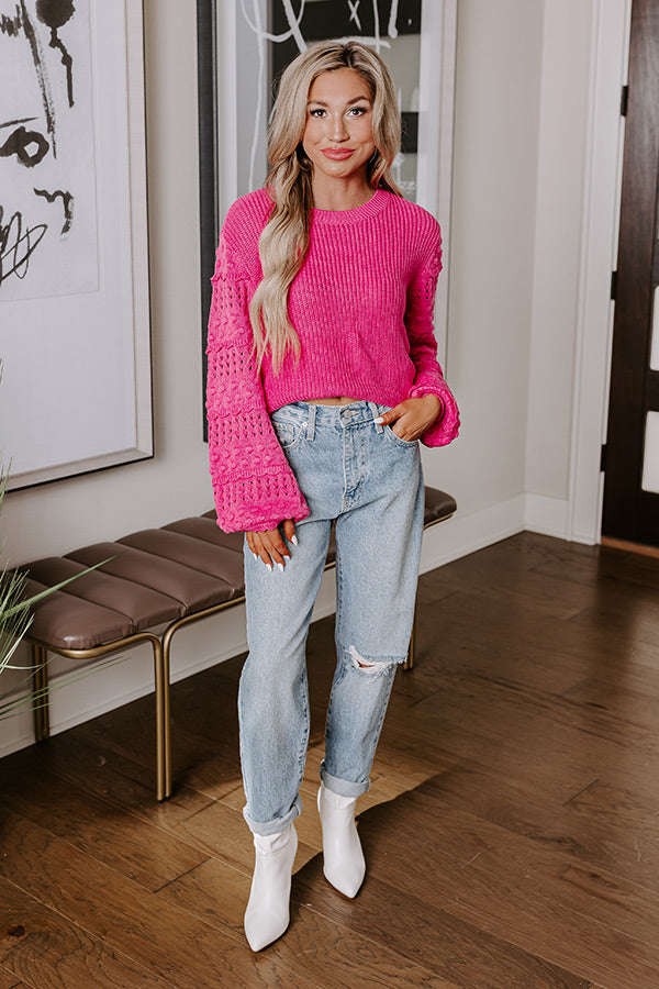 Cityscape Charm Knit Sweater Top in Hot Pink