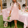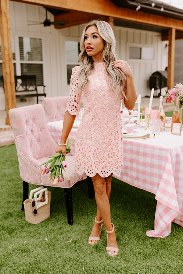 - Figure flattering silhouette that ends in a scalloped mid-thigh length hemline