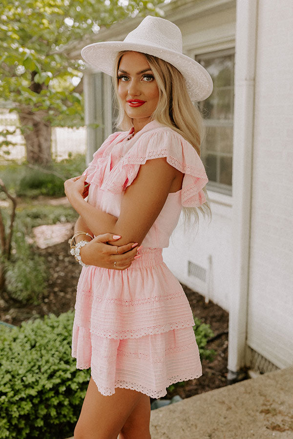 - A relaxed but flattering silhouette that ends in a ruffled hemline