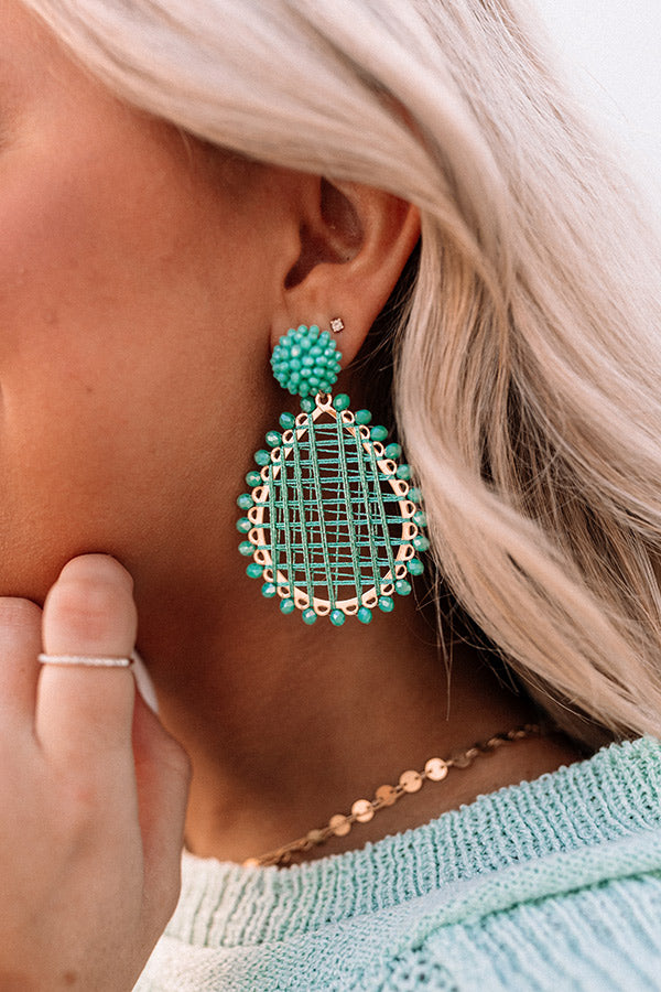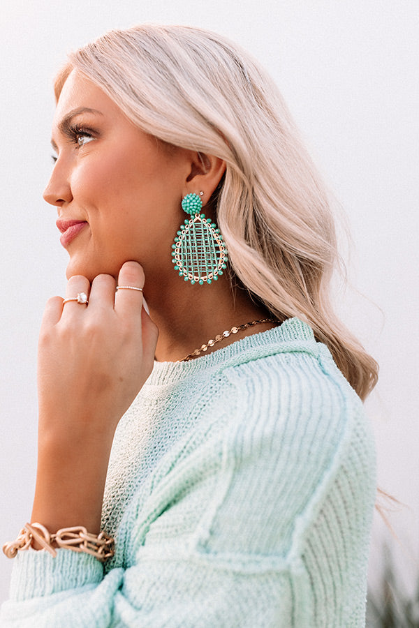 Add a chic pop of color to any look with our statement aqua colored 'Clearwater Cruise' earrings featuring a beaded half ball stud and a dangling gold teardrop hoop with woven accents and trimmed with more tiny beads!